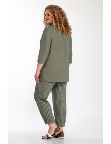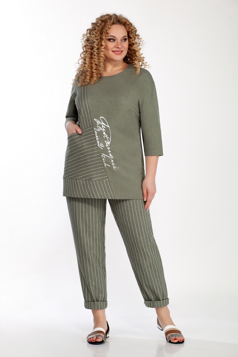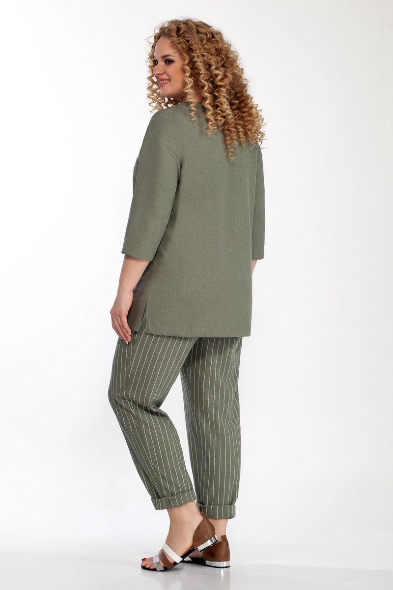 Модель Теллура-Л, М-1560Размеры: 52 - 56 Тип: Костюм Состав ткани: 60% лён, 35% Пэ, 5% эластан «текстиль» Описание: Костюм женский двух предметный, состоящий из брюк и туники. Перед туники с ассиметричными линиями кроя. Использование в данной модели ткани в полоску позволяет создать эффект игры диагональной и вертикальной полоски. Рельеф переда декорирован печатью. По переду туники обработан действующий карман. В данном комплекте используются стильные и модные брюки «бананы». Высокая посадка визуально удлиняет ноги, а заужение к низу делает модель современной и актуальной. Пояс брюк перфорирован эластичной тесьмой и кулисой. По бокам имеются два функциональных кармана. Комплект идеально подходит для повседневной носки. Длина туники ок 74 см Длина рукава ок 37 см Длина брюк ок 106 см НАЗАД К КОЛЛЕКЦИИ |