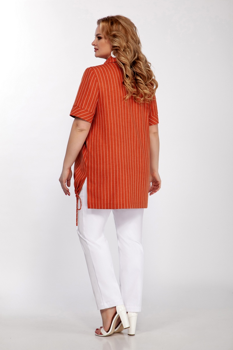 Модель Теллура-Л, М-1574Размеры: 52 - 56 Тип: Комплект Состав ткани: 85% лён, 10% Пэ, 5% ликра (для блузы); 63% хлопок, 33% нейлон, 4% спандекс (для брюк) Описание: Комплект женский состоящий из блузки и брюк. Блуза прямого силуэта. По переду застёжка на укороченную планку петли и пуговицы. Горловина обработана воротником на стойке. Рукав втачной на манжете. Спинка и перед блузы ассиметричен, по переду обработана кулиса. Брюки выполнены из джинсовой ткани в классическом стиле. По переду обработана имитация карманов. Пояс перфорирован эластичной тесьмой, что позволит обеспечить хорошую посадку на фигуре. Длина брюк ок. 103 см Длина блузы ок. 83 см (спинка удлинена) Длина рукав ок. 29 см НАЗАД К КОЛЛЕКЦИИ |