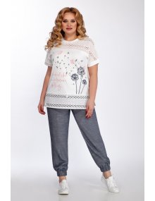 Модель Теллура-Л, М-1579Размеры: 52 - 56 Тип: Костюм Состав ткани: 63% хлопок, 33% нейлон, 4% спандекс (текстиль); 75% вискоза, 22% Пэ, 3% спандекс (трикотаж) Описание: Комплект женский двух предметный. Блуза свободного кроя из тонкого трикотажного полотна и ришелье. Вырез горловины округлой формы. Рукав со спущенной линией плеча, заканчивается манжетой. Перед декорирован печатью. Брюки свободного кроя из легкой ткани под джинс. Пояс отрезной, перфорирован эластичной тесьмой, и декорирован кулисой. По переду обработаны накладные карманы, низ брюк собран на эластичную тесьму. Длина брюк ок 100 см Длина блузы ок 70 см НАЗАД К КОЛЛЕКЦИИ |