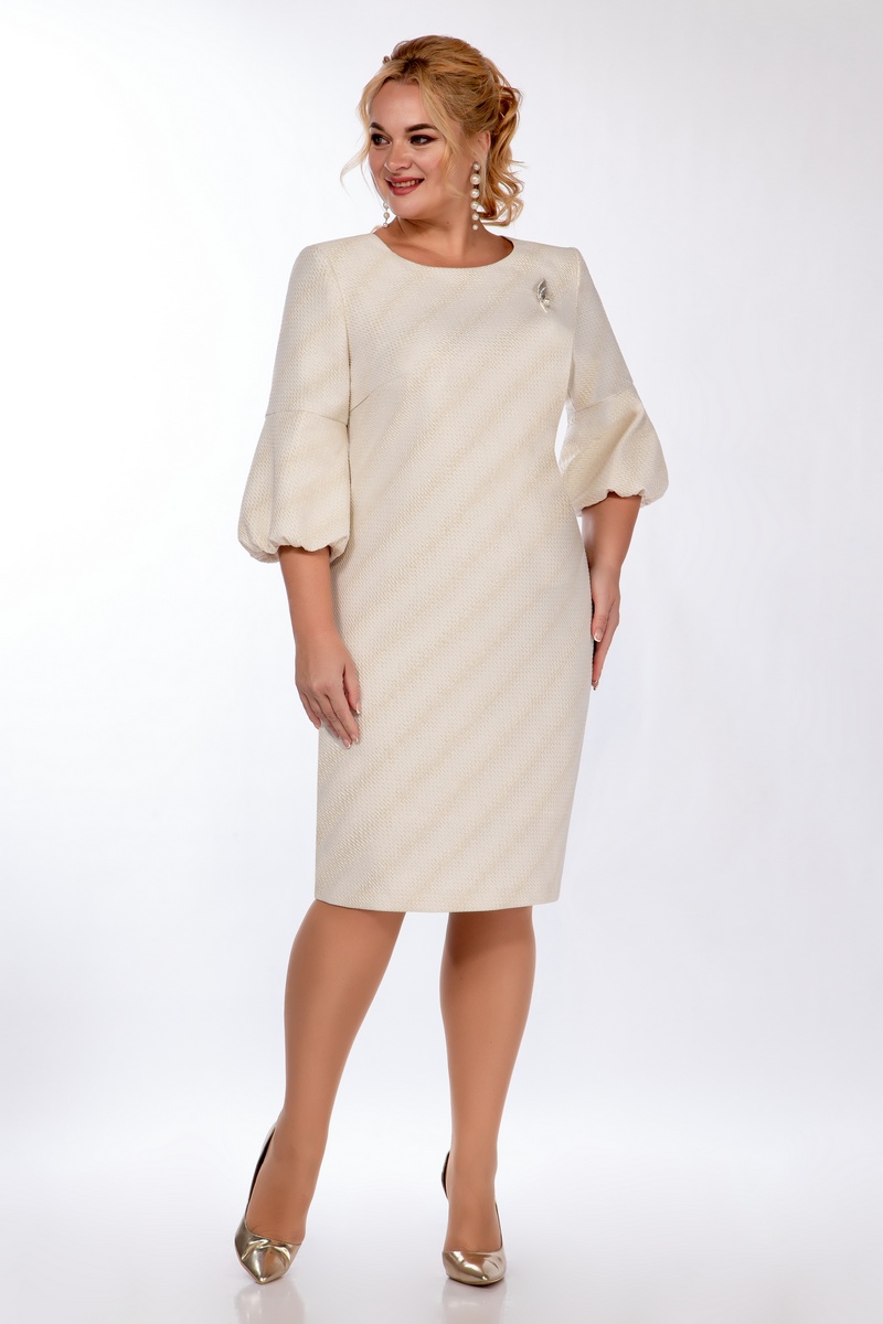 Модель Теллура-Л, М-1653Размеры: 52 - 56 Тип: Платье Состав ткани: 38% вискоза, 57% ПЭ, 5% эластан (текстиль) Описание: Нарядное, очень элегантное, выполненное из текстильной ткани с жаккардовым переплетением с добавлением люрексовой нити. Платье на трикотажной подкладке, полуприлегающего силуэта, длинной до колена. Горловина спереди в форме «лодочка», по спинке красивый V-образный вырез, визуально вытягивающий шею. «Изюминкой» данной модели являются рукава. Рукава втачные с притачеными по низу «фонариками». По переду обработаны нагрудные вытачки. По спинке средний шов с обработанными в нем потайной застежкой на тесьму «молния» и шлицей, а так же талиевые вытачки. В качестве декора в комплект к платью добавлена брошь. Данная модель сделает любую женщину очаровательной. Изделие станет прекрасным выбором для любого торжества. Длина платья ок. 103 см Длина рукава ок. 46 см НАЗАД К КОЛЛЕКЦИИ |