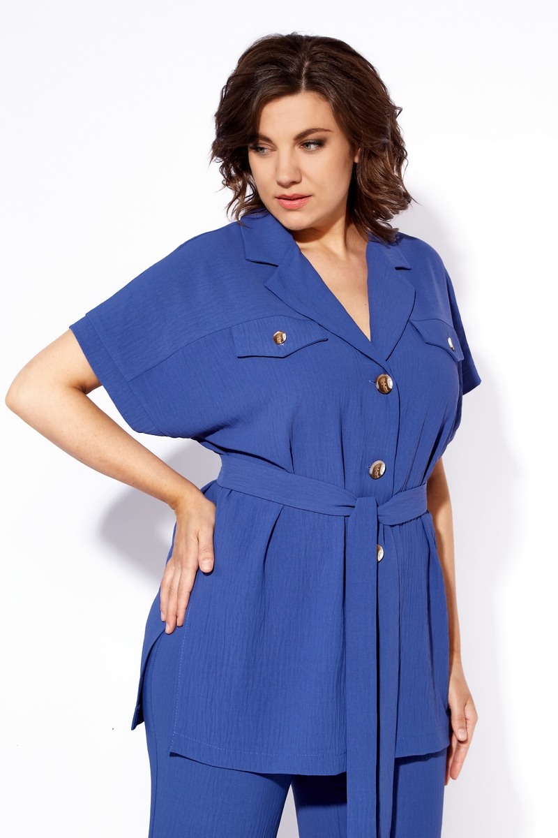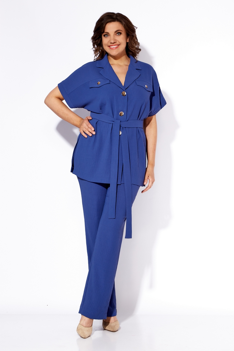 Модель Теллура-Л, М-1681Размеры: 50 - 60 Тип: Костюм Состав ткани: 38% вискоза, 57% ПЭ, 5% эластан (текстиль) Описание: Стильный летний, брючный костюм, выполненный из лёгкой приятной ткани. Жакет прямого силуэта, удалённый. Рукава цельнокроёные короткие с притачной по низу манжетой. Воротник пиджачного типа с лацканами. Застёжка центральная однобортная на три петли и пуговицы. По полочкам обработана кокетка с выходящими из неё клапанами. По спинке так же кокетка, из которой выходит пата, служащая шлёвкой для съёмного пояса. Пата и клапаны декорированы пуговицами. В боковых швах выполнены высокие разрезы. Брюки прямые. Пояс отрезной, по бокам и сзади на резинке. Костюм смотрится достаточно элегантно для того, что бы Вы смогли надеть его на все случаи жизни. Он подойдёт как для работы, так и для торжественных мероприятий. Длина жакета ок. 72 см Длина рукава ок. 20 см Длина брюк ок. 105 см НАЗАД К КОЛЛЕКЦИИ |