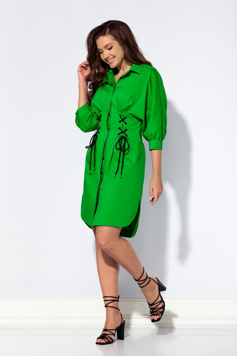 Модель Теллура-Л, М-1686Размеры: 46 - 50 Тип: Платье Состав ткани: 63% хлопок, 33% нейлон, 4% спандекс (текстиль) Описание: Стильное молодёжное платье-рубашка с оригинальным решением в области талии. Платье с эффектом корсета, благодаря чему Вы сможете подчеркнуть свою сексуальность. По горловине обработан рубашечный воротник на отрезной стойке. Застёжка центральная потайная но 10 петель и пуговиц. Рукава цельнокроёные длиной ¾. По низу присборенные, с отрезной манжетой, застёгивающейся на петлю и пуговицу. Низ изделия фигурный, по бокам с закруглёнными разрезами. Задняя часть длиннее, чем передняя. По переду и по спинке в области талии застрочены складки, в которых обработаны фигурные планки с люверсами. Через люверсы продет шнур, при помощи которого есть возможность регулировать приталивание платья. Правильно подобрав обувь к данной модели платья, Вы сможете грамотно обыграть весь образ. Длина платья ок. 100 см Длина рукава ок. 47 см НАЗАД К КОЛЛЕКЦИИ |