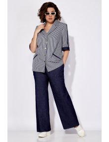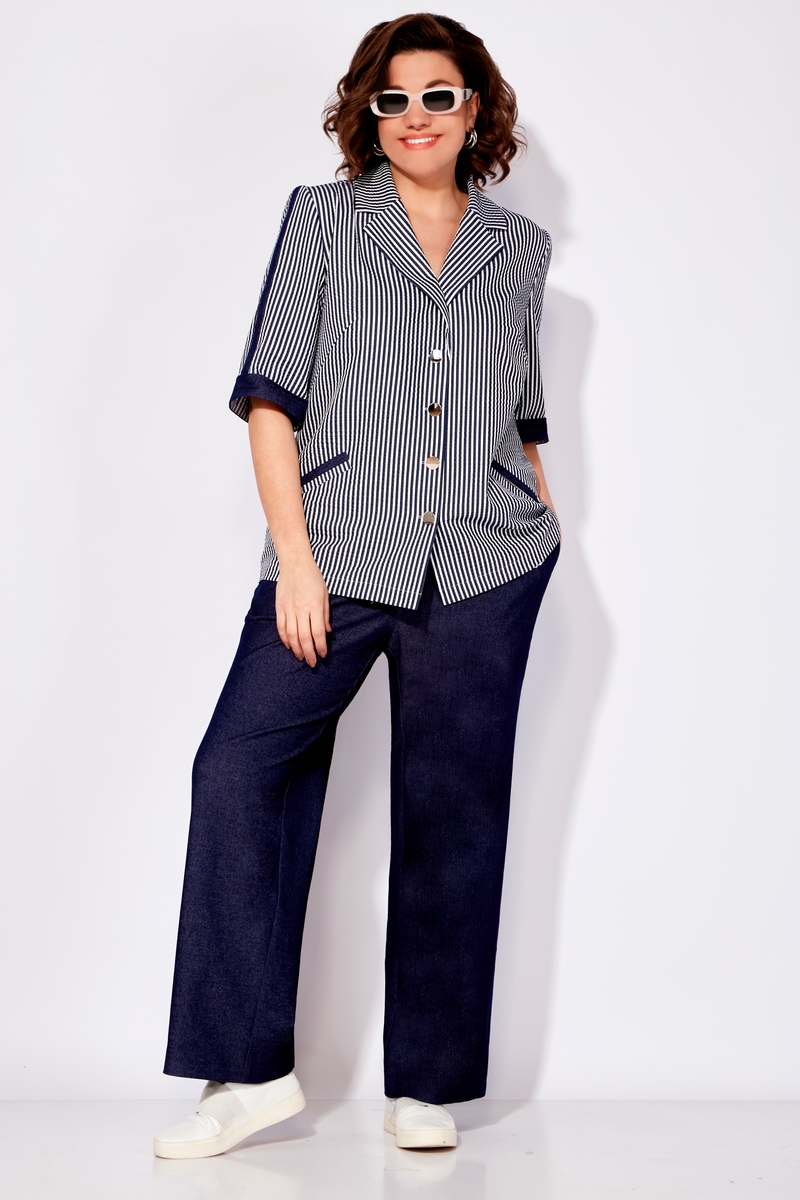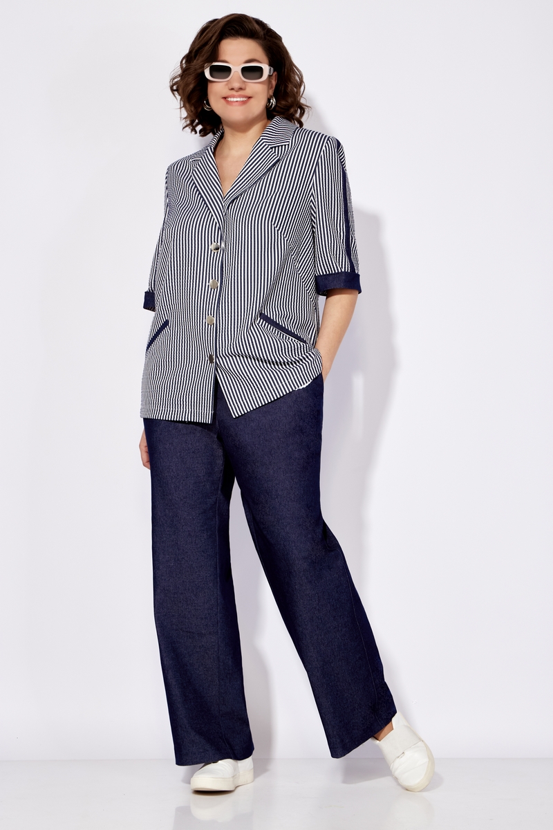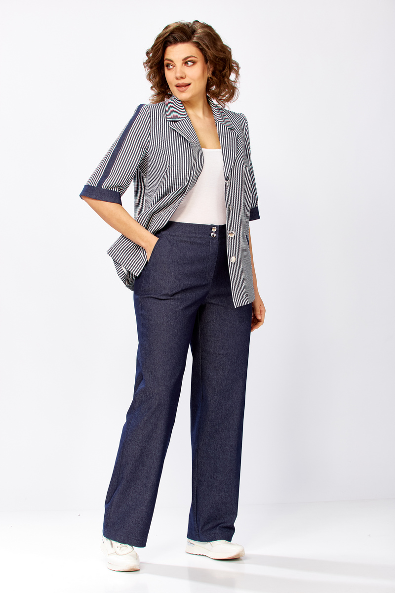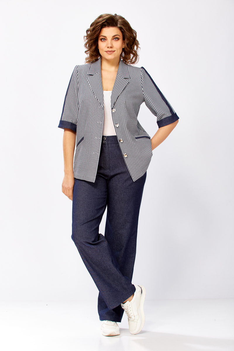 Модель Теллура-Л, М-1730Размеры: 54 - 58 Тип: Комплект Состав ткани: 63% хлопок, 33% нейлон, 4% спандекс (текстиль) Описание: Стильный и современный женский комплект, 2-х предметный, состоит из жакета и брюк. Жакет выполнен из натурального тонкого джинсового хлопкового материала с современным дизайном в полоску. Брюки из джинса средней плотности. Изделие станет прекрасным дополнением в гардеробе любой модницы, прекрасно подойдет для повседневной носки. Жакет прямого, свободного силуэта. По переду расположены нагрудные выточки, ниже линии талии карман оформленный входом в рамку. Вырез горловины V-образный оформлен отложным воротником. Застежка на петли-пуговицы по центральной части переда. Спинка со средним швом, рельефами, кокеткой. Рукав втачной, двухшовный, по низу с отложной манжетой. Брюки прямые, свободные, слегка расширенны к низу, на притачном поясе со сборкой на резинку по задней части, а также с застежкой на молнию по передней части. По верхней части брюк выполнены карманы между боковым швом и поясом. Длина жакета ок. 67 см Длина рукава жакета ок. 35 см Длина брюк ок. 102 см НАЗАД К КОЛЛЕКЦИИ |