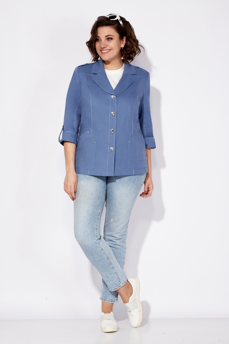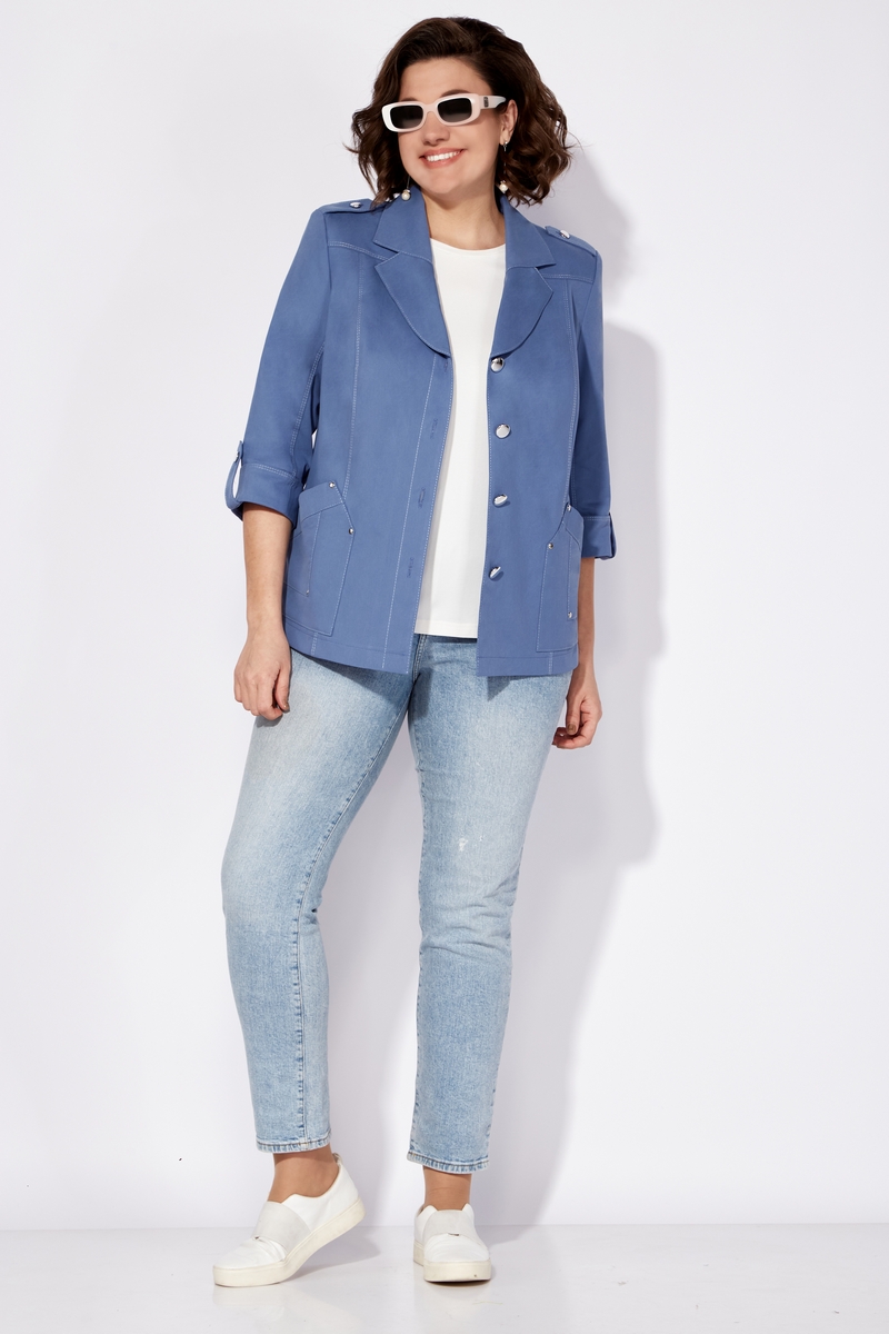 Модель Теллура-Л, М-1729Размеры: 54 - 58 Тип: Жакет Состав ткани: 63% хлопок, 33% нейлон, 4% спандекс (текстиль) Описание: Стильный женский жакет выполнен в спортивно-повседневном стиле из натурального джинсового хлопкового материала. Изделие станет прекрасным дополнением в гардеробе любой модницы, прекрасно подойдет для повседневной носки. Жакет прямого слегка приталенного силуэта. По переду фигурная кокетка, рельефы, ниже линии талии выполнен накладной фигурный, ассиметричный карман с отделкой в виде хольнитенов. Вырез горловины V-образный оформлен цельнокроеным воротником стойкой. Застежка на петли-пуговицы по центральной части переда. Спинка со средним швом, рельефами, кокеткой. Рукав втачной, двухшовный, по низу с притачной манжетой, крепящейся на пуговицу. По всем швам на жакете выполнена отделочная строчка контрастными нитками. Длина жакета ок. 63 см Длина рукава ок. 42 см НАЗАД К КОЛЛЕКЦИИ |