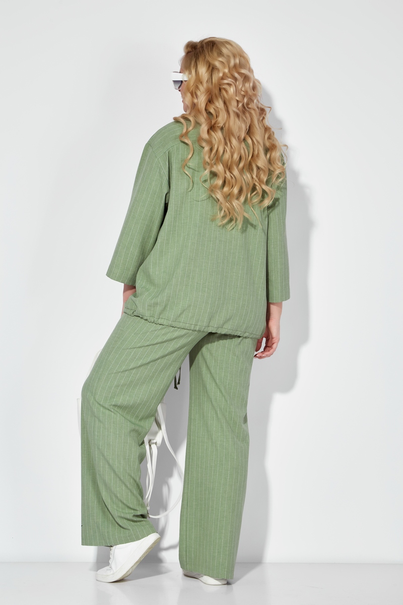 Модель Теллура-Л, М-1738Размеры: 54 - 58 Тип: Комплект Состав ткани: 60% лён, 35% Пэ, 5% эластан (текстиль) Описание: Стильный летний, 2-х предметный брючный комплект, брюки и бомбер, выполненный из лёгкой лён содержащей ткани с неярким принтом в полоску, особенно актуальном в нынешнем сезоне. Бомбер прямого, свободного силуэта. Вырез V-образный, оформленный отложным аккуратным воротником. Застежка на молнию. Особенность бомбера - фигурный карман обыгранный направлением полоски. Рукав на спущенной пройме, что придает изделию спортивной и современной стилистики, низ рукава обработан закрытым швом, что позволяет самостоятельно регулировать длину рукава, закатывая его до нужной длины. По низу бомбер обработан притачной кулисой, это позволяет регулировать свободу изделия стягивая его на шнур с фиксатором. Брюки прямые «от бедра», на притачном поясе в котором по задней части выполнены вставки из эластичной резинки. По переду выполнена застежка типа «гульфик» на тесьму-молнию. Комплект смотрится стильно и элегантно, неяркий принт полоски визуально удлиняет силуэт, делает его изящнее и стройнее. Прекрасно подойдёт как для работы, так и для любых летних мероприятий. Длина жакета ок. 70 см Длина рукава ок. 41 см Длина брюк ок. 107 см НАЗАД К КОЛЛЕКЦИИ |
