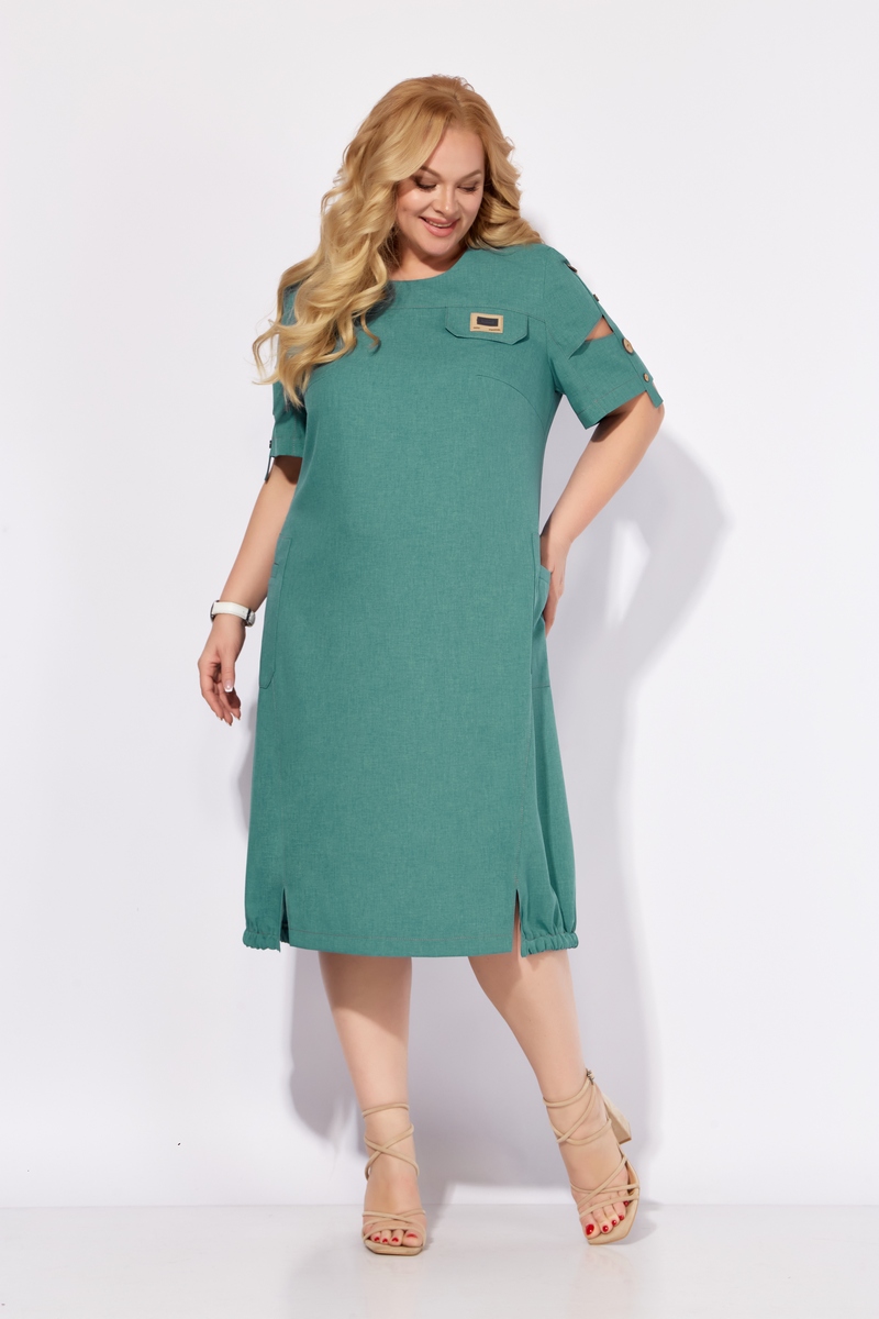 Модель Теллура-Л, М-1736_Размеры: 54 - 64 Тип: Платье Состав ткани: 60% лён, 35% Пэ, 5% эластан (текстиль) Описание: Стильное женское платье силуэта типа «баллон», по низу частично собрано на резинку, выполнено из лён содержащего текстильного материала, не мнущегося и обладающего превосходной износостойкостью. Горловина округлая. По переду платья выполнена кокетка, в которой расположен клапан и подрезы-рельефы от линии бедер, по низу формирующие разрезы. На уровне бедер, по боковой части платья, расположен накладной фигурный карман, с входом оформленным листочкой. Особенность платья - сложный рукав состоящий из нескольких частей, паты, по всей длине рукава с расположенными по ней пуговицами в качестве отделки, и, нижней и верхней частями формирующими разрез. Спинка со средним швом, в котором по верху выполнена застежка на потайную тесьму-молнию. По всем швам выполнена отделочная строчка контрастными нитками. Платье прекрасно подойдет как для повседневной носки, так и для выхода в свет. Легко обыгрывается аксессуарами. Длина платья ок. 109 см Длина рукава ок. 28 см НАЗАД К КОЛЛЕКЦИИ |