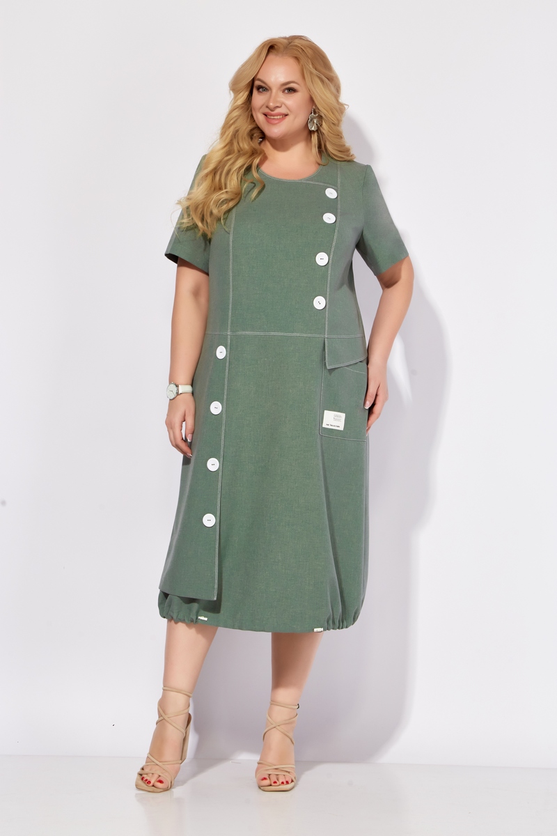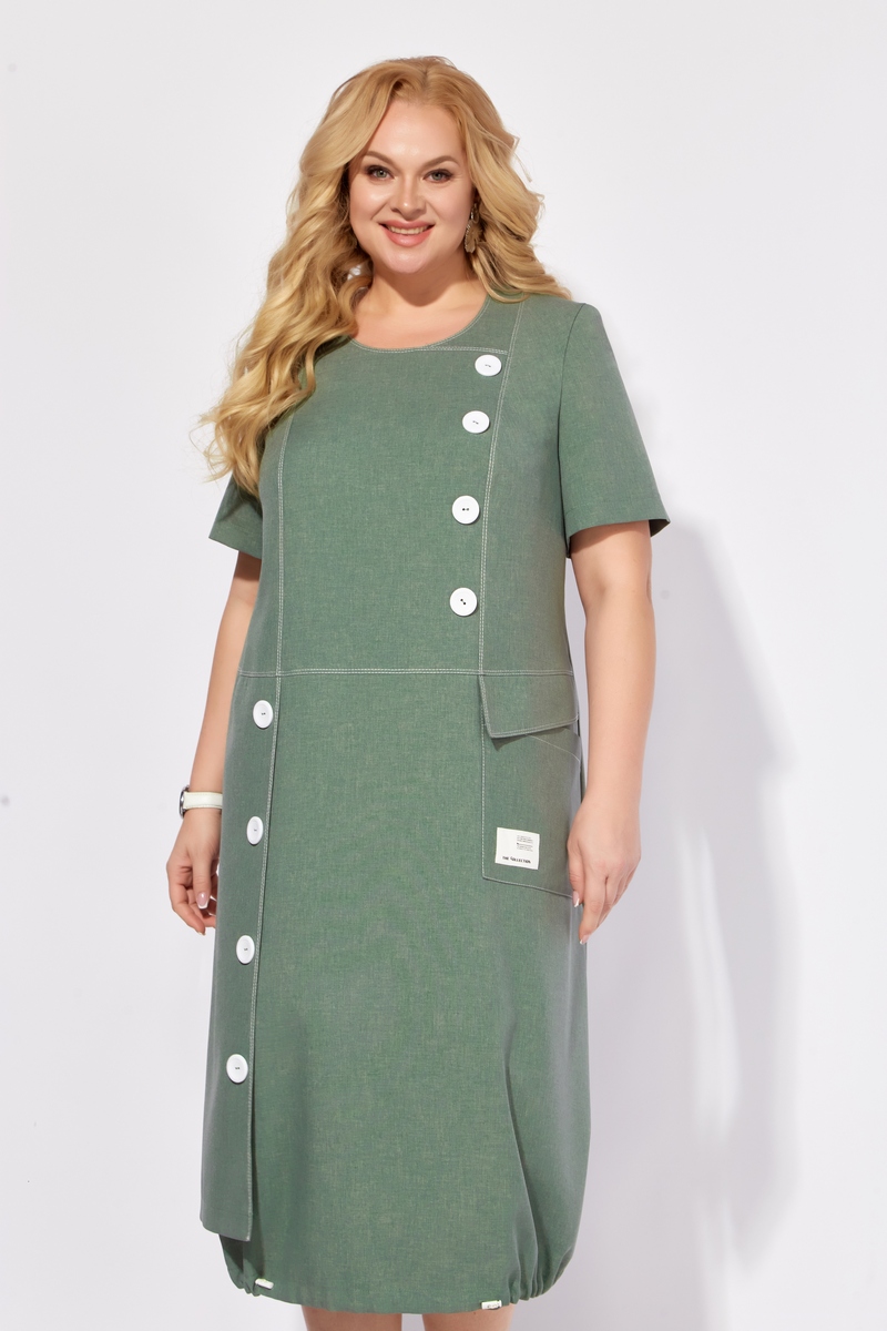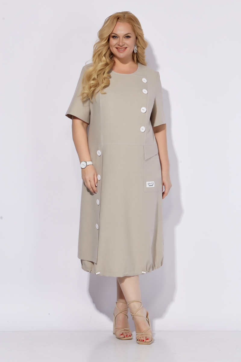 Модель Теллура-Л, М-1785Размеры: 54 - 64 Тип: Платье Состав ткани: 60% лён, 35% Пэ, 5% эластан (текстиль) Описание: Платье женское, летнее, выполнено из льносодержащего полотна. Силуэт свободный, стиль "бохо". Предназначено для повседневной носки в летний период. Силуэт: Свободный, слегка притален, к низу расширен со сборкой на резинку. Подчеркивает естественность и комфорт, что соответствует актуальной тенденции к расслабленным формам в одежде. Линия плеча: Естественная. Длина: Миди, чуть ниже колена. Горловина: Округлая Застежка: На потайную тесьму-молнию в среднем шве по спинке. Линия талии: Горизонтальный подрез. Акцент на талии, но без стеснения движений. Юбка:От подреза по талии выполнен отлетной элемент крепящийся на пуговицы по правой стороне, а по левой расположен накладной карман с клапаном. Спинка: С рельефами для лучшей посадки по фигуре. Рукав: Втачной, короткий. Подчеркивает легкость и летнее настроение платья. Материалы:Льносодержащее полотно. Лен – натуральный, дышащий материал, идеально подходящий для летней одежды. Подчеркивает экологичность и близость к природе, что соответствует ценностям стиля "бохо" и современной моде на устойчивость. Использование льносодержащего полотна отражает тренд на осознанное потребление и выбор натуральных материалов. Свободный силуэт платья соответствует тенденции к расслабленной одежде, не сковывающей движения. Данное платье представляет собой стильный и комфортный вариант летней одежды, сочетающий в себе элементы бохо-шика, последние модные тенденции и практичность. Использование льносодержащего полотна делает его идеальным выбором для жаркой погоды, а продуманный крой обеспечивает свободу движений и подчеркивает достоинства фигуры.