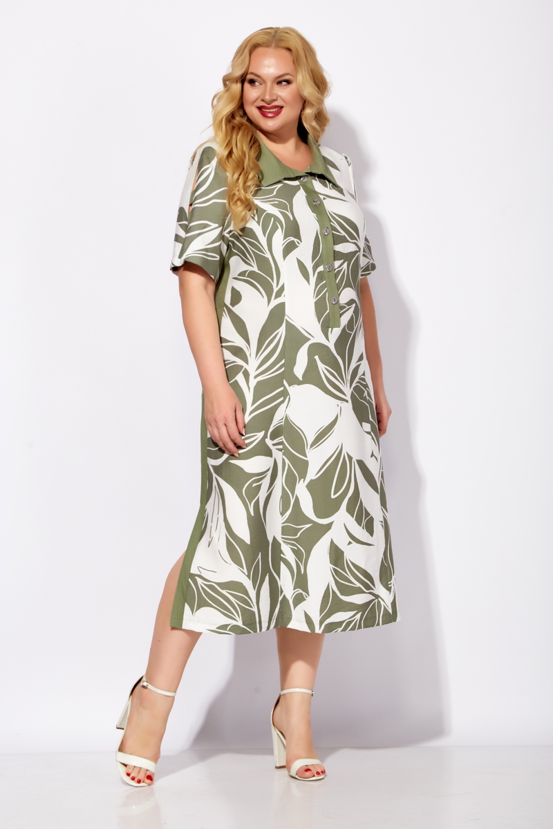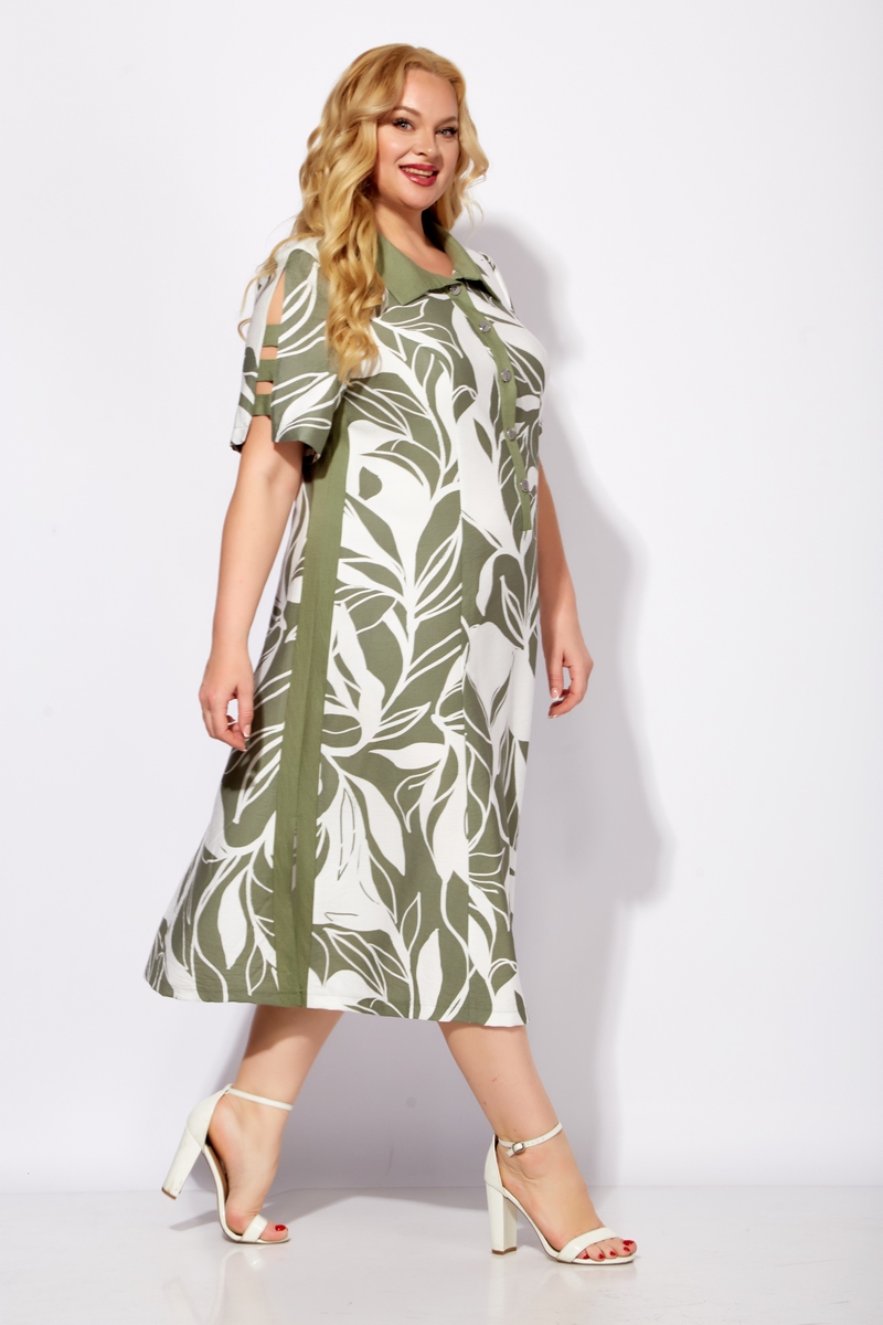 Модель Теллура-Л, М-1793Размеры: 54 - 64 Тип: Платье Состав ткани: 38% вискоза, 57% ПЭ, 5% эластан (текстиль) Описание: Стильное, легкое, нарядное летнее платье, свободного расширенного к низу силуэта. Выполнено из тонкой плательной ткани с оригинальным и современным дизайном, не мнущейся. В качестве отделки использованы вставки из однотонна. Застежка по центральной части платья на планку с петлями-пуговицами. Воротник отложной в рубашечном стиле. Вдоль бокового шва выполнены вставки из однотонна, этот отделочный элемент эффектно удлиняет и сужает силуэт. По низу бокового шва выполнен длинный разрез. Изюминка платья - это оригинальный рукав, с разрезом по центральной части, соединенный перемычками из однотонной ткани. Длина рукава чуть выше локтя. Платье прекрасно подходит как для повседневной носки, так и для торжественных мероприятий. Длина рукава ок. 30 см Длина платья ок. 121 см НАЗАД К КОЛЛЕКЦИИ |