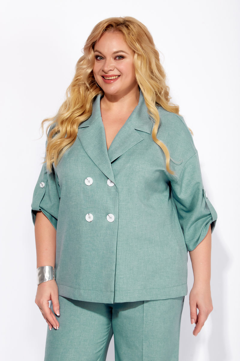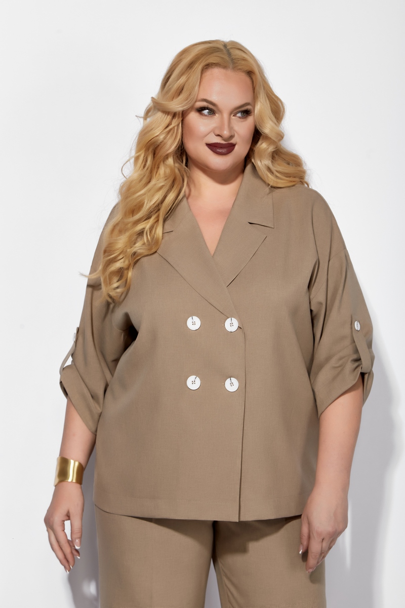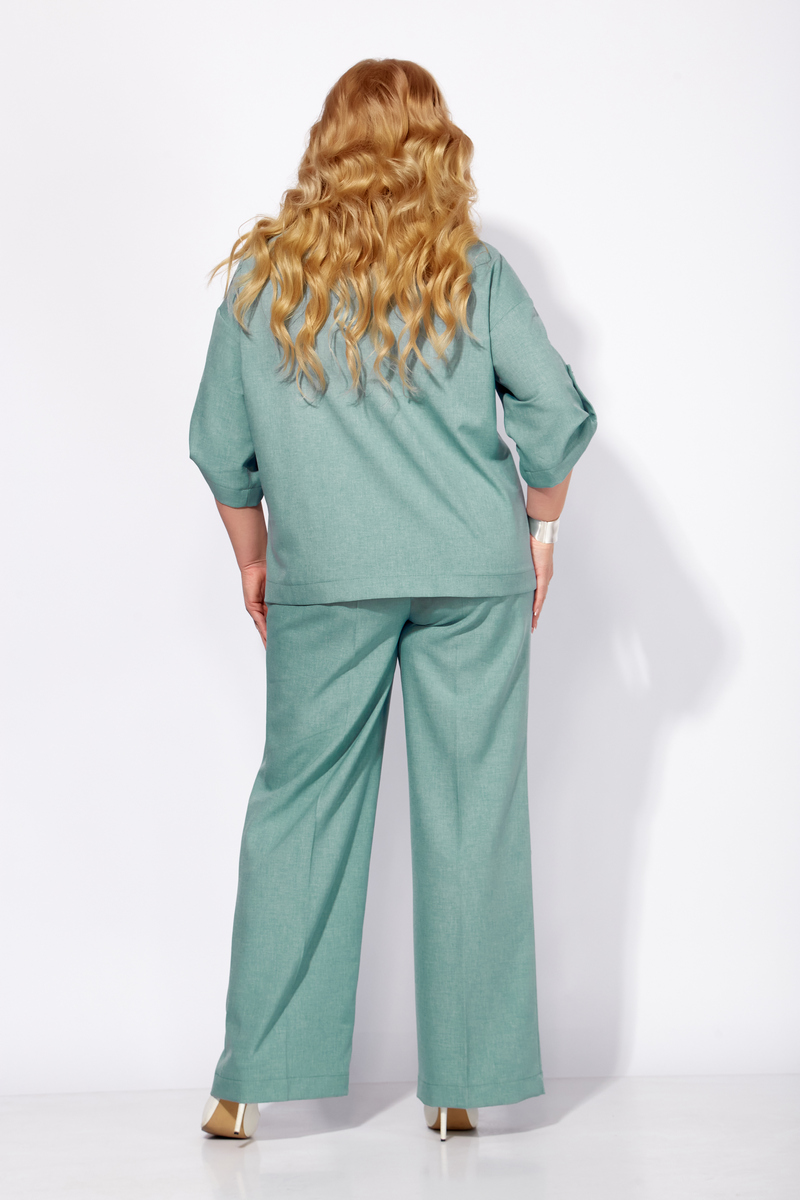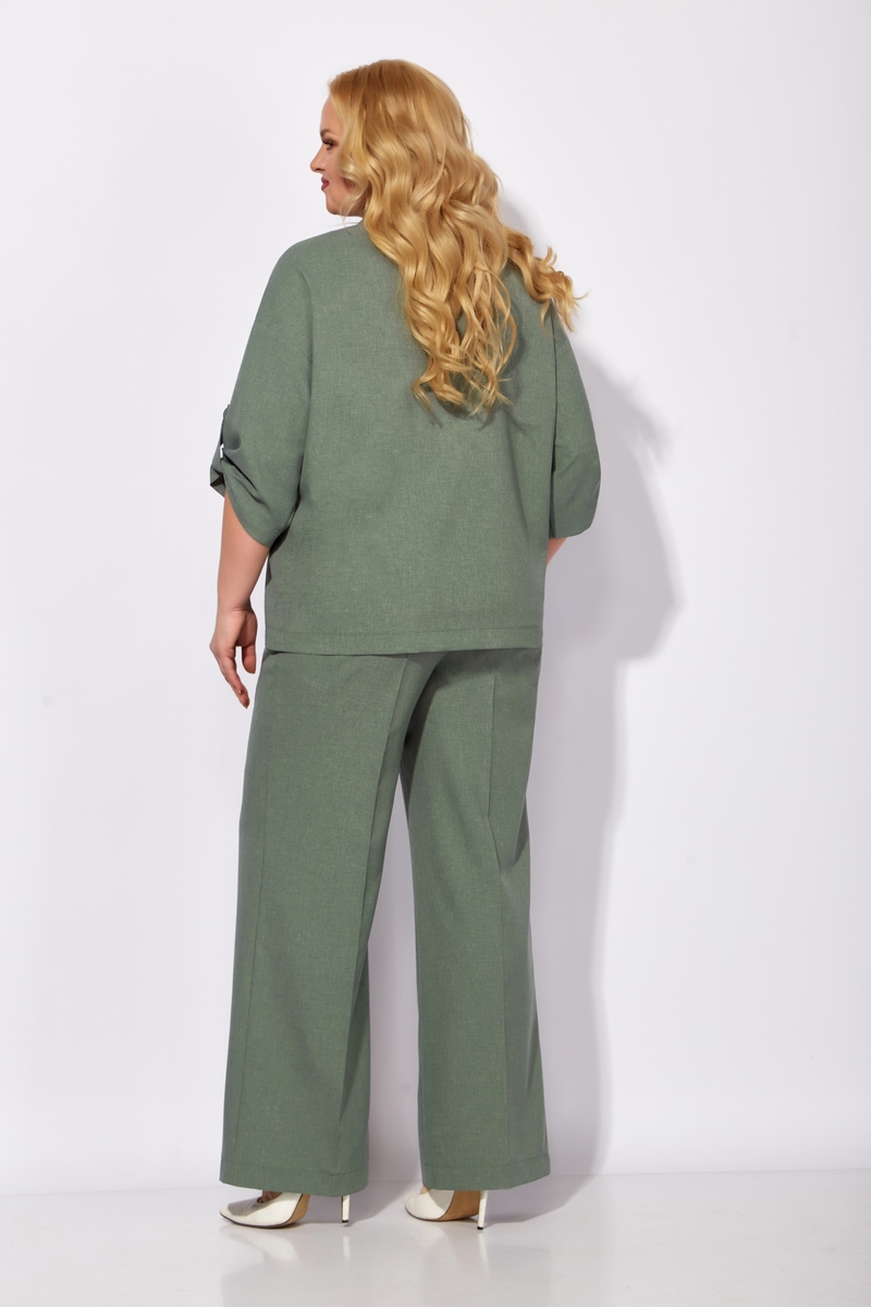 Модель Теллура-Л, М-1809Размеры: 46 - 56 Тип: Костюм Состав ткани: 60% лён, 35% Пэ, 5% эластан (текстиль) Описание: Модные и стильные брючные костюмы – это идеальный выбор для работы. Правильно подобранная модель выгодно подчеркнет фигуру, но не создаст и намека на игривость. Поэтому классический костюм с брюками прекрасно вписывается даже в самый строгий офисный дресс-код. Предлагаемая нами модель состоит из жакета и брюк, выполненных из костюмного текстильного полотна. Жакет без подкладки, с V-образным вырезом, оформленный отложным воротником. Застежка ассиметричная, двубортная, на четыре петли-пуговицы. Рукав жакета выполнен на основе спущенной проймы, что придает образу мягкости и легкости. Длина рукава ¾, по низу выполнена пата. Брюки прямые, широкие, на притачном поясе с частичной сборкой на резинку и застежкой типа «гульфик» по передней части. Изысканный классический костюм такого фасона понравится женщинам ценящим стиль. Длина жакета ок 66 см Длина рукава ок 46 см Длина брюк ок 103 см НАЗАД К КОЛЛЕКЦИИ |