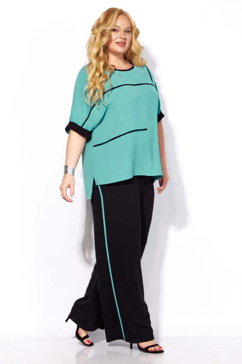 Летний костюм выполнен в современном свободном силуэте, сочетающем комфорт и актуальные тренды. Комплект включает: