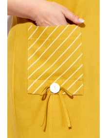 Стильное женское платье полуприлегающего силуэта в стиле «спорт-шик». Платье выполнено из трикотажной ткани в двух расцветках, полоска и однотон. Горловина круглая. Рукава втачные одношовные с отделкой в виде вставки из отделочной ткани. По переду обработана горизонтальная кокетка и диагональный подрез. Перед ассиметричен, справа, в области бедра, выполнен функциональный накладной карман, слева, карман оформлен листочкой. В качестве отделки добавлены декоративные нашивки.