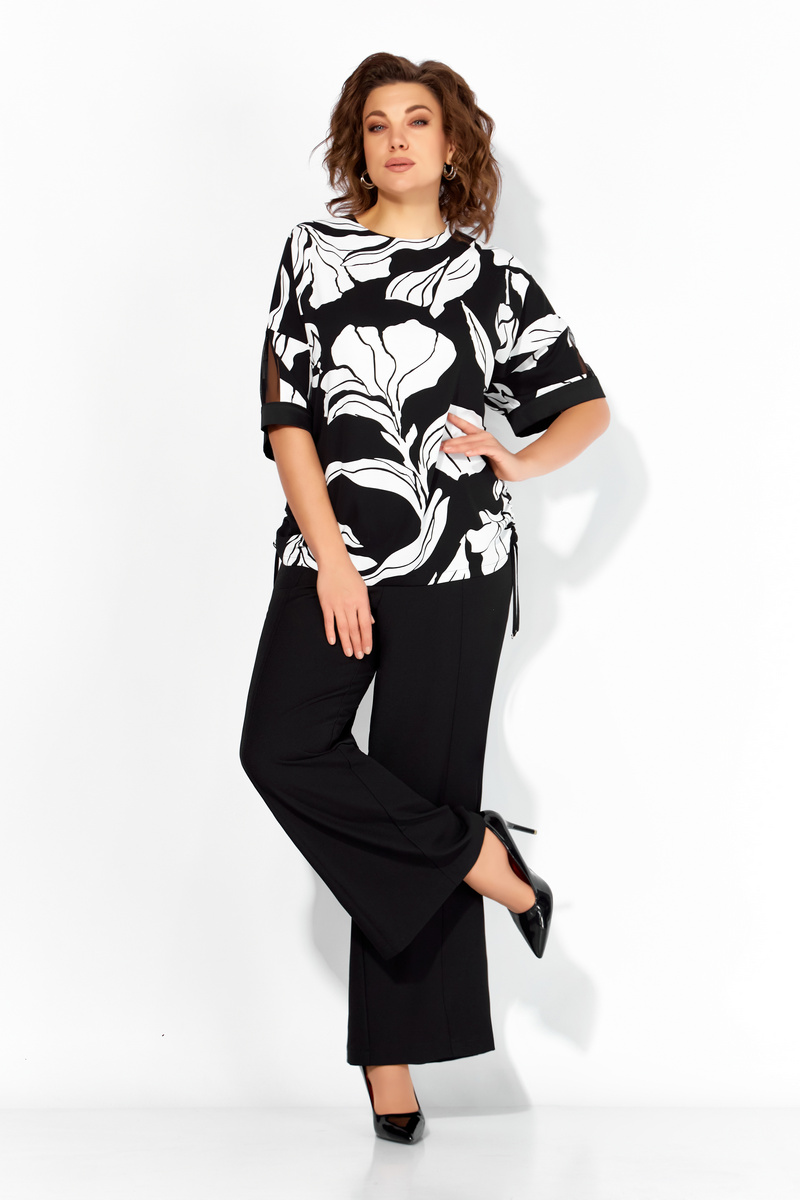 Модель Теллура-Л, М-1823Размеры: 52 - 62 Тип: Комплект Состав ткани: 38% вискоза, 57% ПЭ, 5% эластан (текстиль) Описание: Представляем Вашему вниманию элегантный женский комплект, состоящий из свободных, широких брюк и стильной блузы, выполненных из высококачественного материала. Этот модный ансамбль идеально сочетает в себе актуальные тенденции, комфорт и женственность, делая его незаменимым в гардеробе современной женщины. Блуза прямого свободного силуэта, изготовленная из мягкой и пластичной блузочно-плательной ткани, отличается кроем кимоно и округлым вырезом горловины, который нежно обрамляет шею, подчеркивая её линию. Контрастный принт придает модели особый шарм и уникальность, создавая интересные визуальные акценты. Этот дизайн не только привлекает внимание, но и эффективно скрывает небольшие недостатки фигуры, создавая иллюзию стройности. Блуза легко комбинируется с разными низами, позволяя создавать множество стильных образов. Брюки прямого, широкого кроя, оснащенные застежкой на тесьму и молнию, обеспечивают удобство и практичность в носке. Частично вставленная резинка по поясу добавляет комфорта, позволяя ткани свободно обтекать фигуру, не сковывая движений. Этот элемент гарантирует, что брюки безупречно сидят на талии и создают гармоничный профиль, что особенно актуально в современных модных тенденциях, акцентирующих внимание на естественной красоте фигур. В этом комплекте Вы не только будете выглядеть стильно, но и почувствуете уверенность благодаря удачному сочетанию тканей, дизайна и комфорта. Создайте свой уникальный стиль с этим великолепным комплектом, который преображает каждый день в праздник моды!