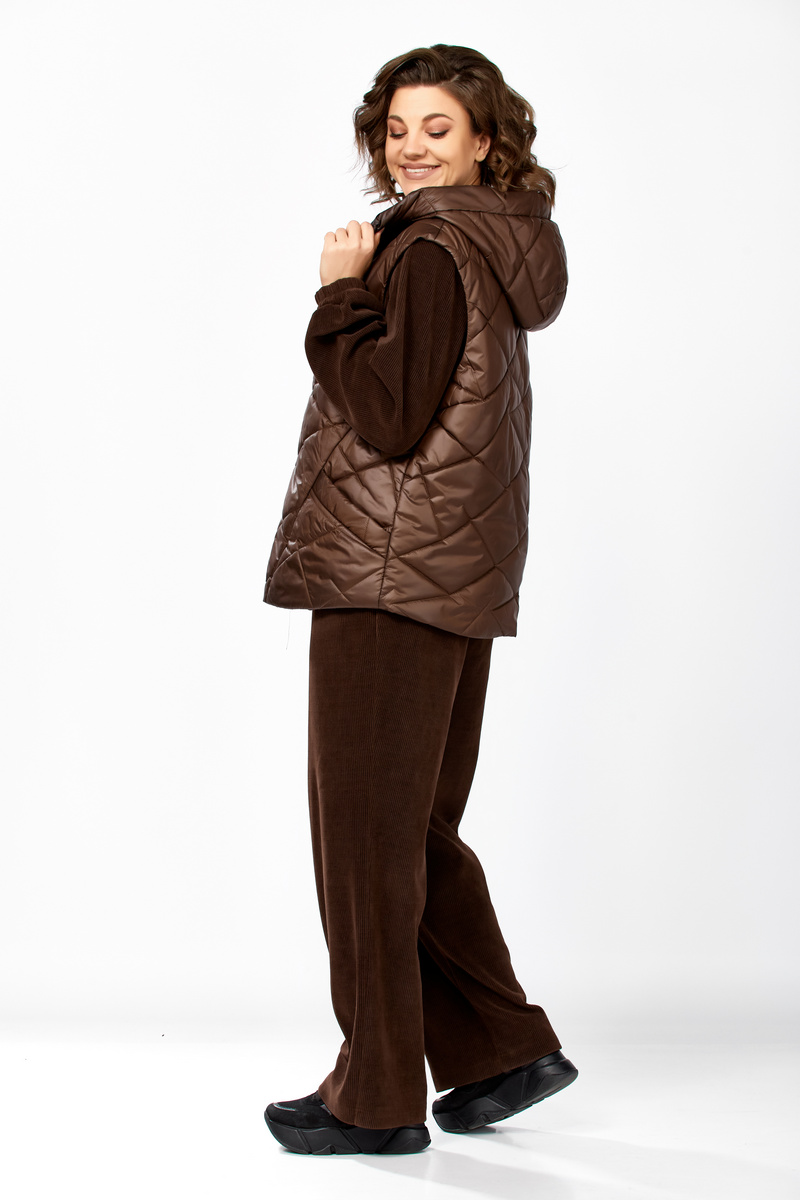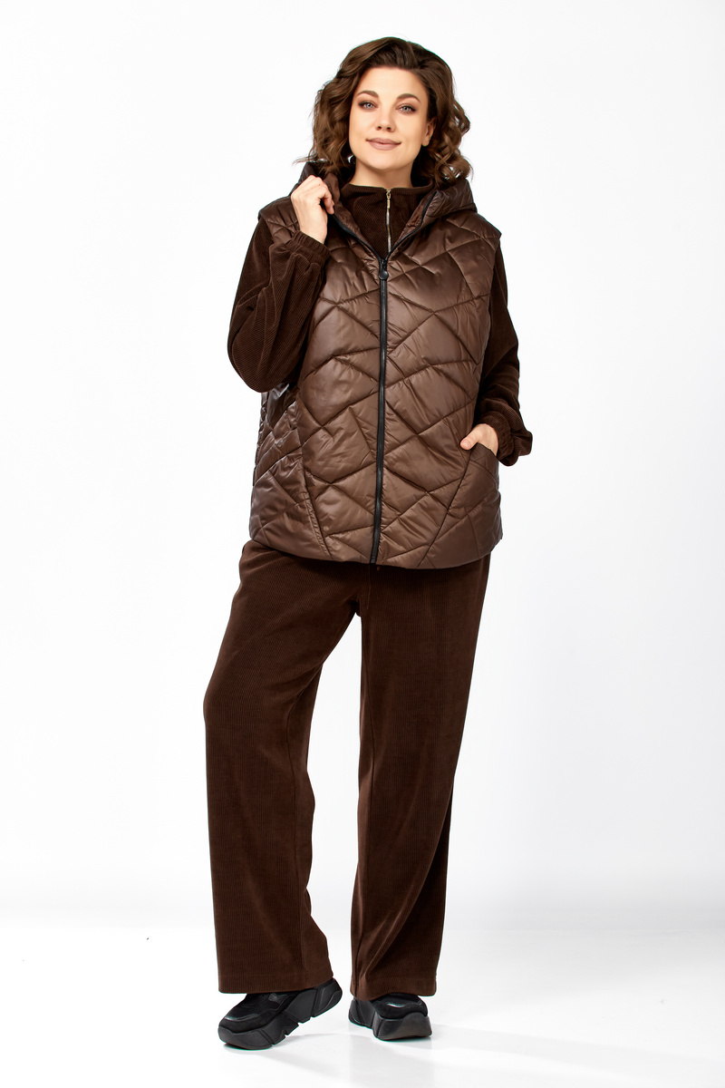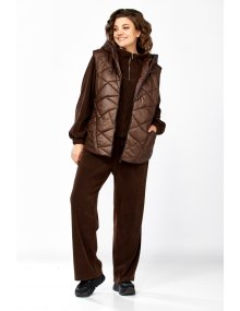 Модель Теллура-Л, М-1824Размеры: 48 - 58 Тип: Комплект Состав ткани: 75% вискоза, 22% Пэ, 3% спандекс Описание: Стильный женский брючный комплект в спортивном стиле, жилетка и брюки со свитшотом. Подойдёт для повседневных будней и прогулок. Выполнен из двух видов ткани. Жилетка из плащёвки, стеганная, на синтепоне, на подкладке. Жилетка прямого силуэта в стиле «Oversize», удлинённая сзади, с капюшоном. По переду обработаны фигурные подрезы, в которых выполнены функциональные карманы. По центру куртки обработана застежка на тесьму «молния». Мягкие и удобные спортивные брюки из трикотажного вельвета. Пояс на резинке. В боковых швах обработаны функциональные карманы. Свитшот прямого свободного силуэта, с рукавом на спущенной пройме, горловина обработана отложным воротником, застегивающимся на молнию. Данный комплект не оставит равнодушной ни одну модницу. Изделие станет прекрасным выбором для прохладной погоды.
