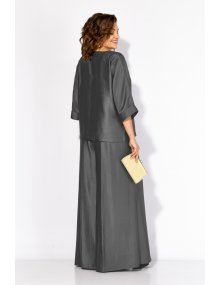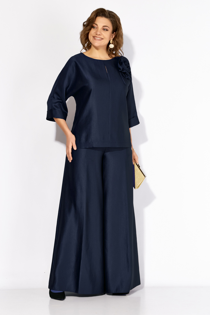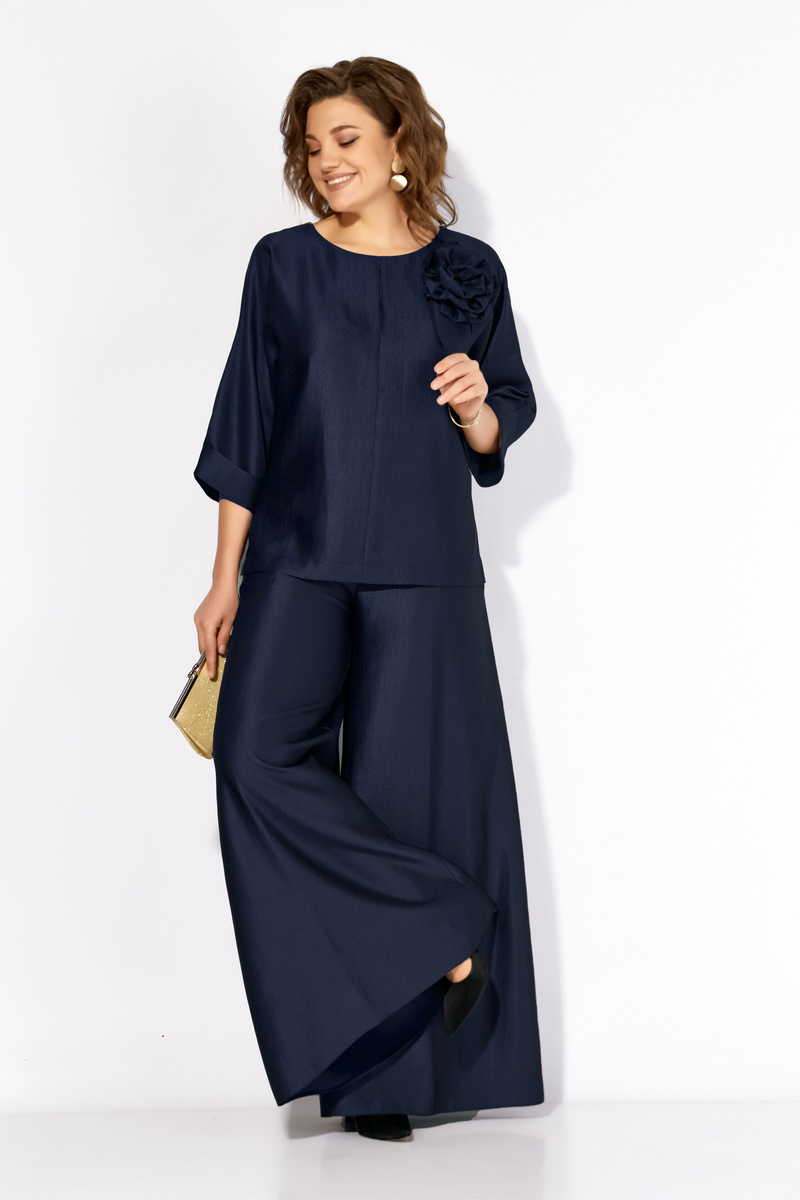 Модель Теллура-Л, М-1830Размеры: 46 - 56 Тип: Комплект Состав ткани: 38% вискоза, 57% ПЭ, 5% эластан (текстиль) Описание: Нарядный комплект выполнен в современном свободном силуэте, сочетающем комфорт и актуальные тренды. Комплект включает в себя брюки-юбку и блузон. Выполнен из струящейся ткани, с легким блеском. Этот модный ансамбль идеально сочетает в себе актуальные тенденции, комфорт и женственность, делая его незаменимым в гардеробе современной женщины. Блузон свободный, слегка расширенный к низу. Длиной до середины бедра. Вырез горловины округлый, умеренной глубины.