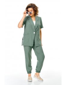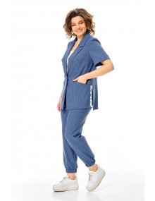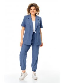 Модель Теллура-Л, М-1829Размеры: 50 - 64 Тип: Комплект Состав ткани: 60% лён, 35% Пэ, 5% эластан (текстиль) Описание: Стильный летний, 2-х предметный брючный комплект, брюки и жакет, выполненный из лёгкой лён содержащей ткани. Жакет прямого, свободного силуэта. Вырез V-образный, оформленный отложным аккуратным воротником. Застежка на пуговицу, по боковым швам выполнен разрез оформленный настрочной отделочной тесьмой контрастного цвета. Рукав втачной, короткий, что придает изделию спортивной и современной стилистики, низ рукава обработан манжетой.