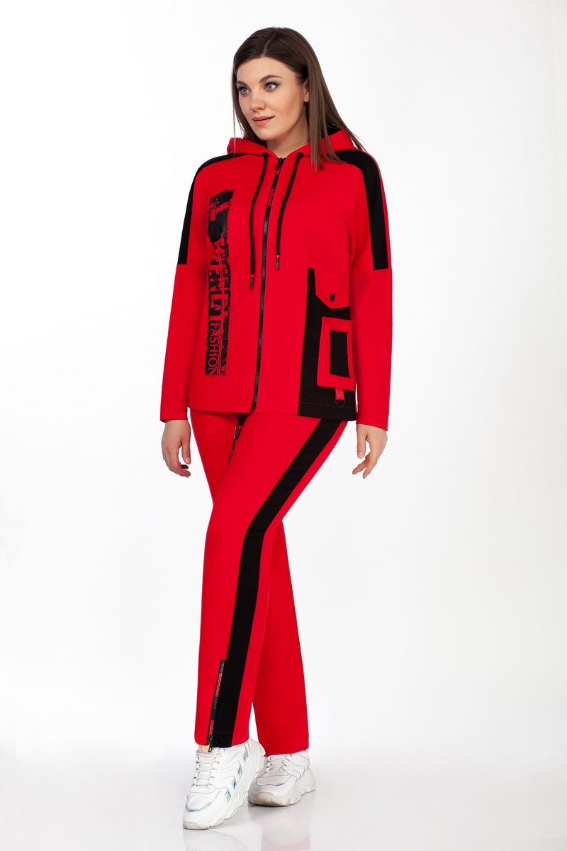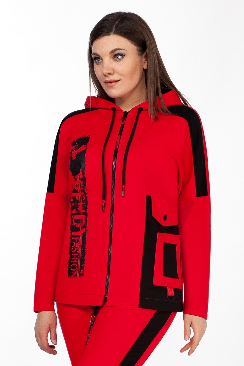 Модель Теллура-Л, М-1546Размеры: 52 - 56 Тип: Костюм Состав ткани: 75% вискоза, 22% Пэ, 3% спандекс (для костюма) трикотаж Описание: Стильный женский комплект выполнен в спортивном стиле из высококачественного трикотажа. Блузон прямого силуэта с центральной застежкой на молнию. Перед блузона декорирован печатью, накладными деталями имитирующими карман, клапан декорирован люверсом. Горловина блузона оформлена капюшоном. Брюки с лампасами из контрастной ткани, по переду обработаны карманы, по низу брюк в боковом шве обработана застежка на молнию. Пояс на эластичную тесьму и кулису. В изделии используется высококачественная оригинальная фурнитура. Длина блузона ок 65см Длина рукава ок 62см Длина брюк ок 108см НАЗАД К КОЛЛЕКЦИИ |