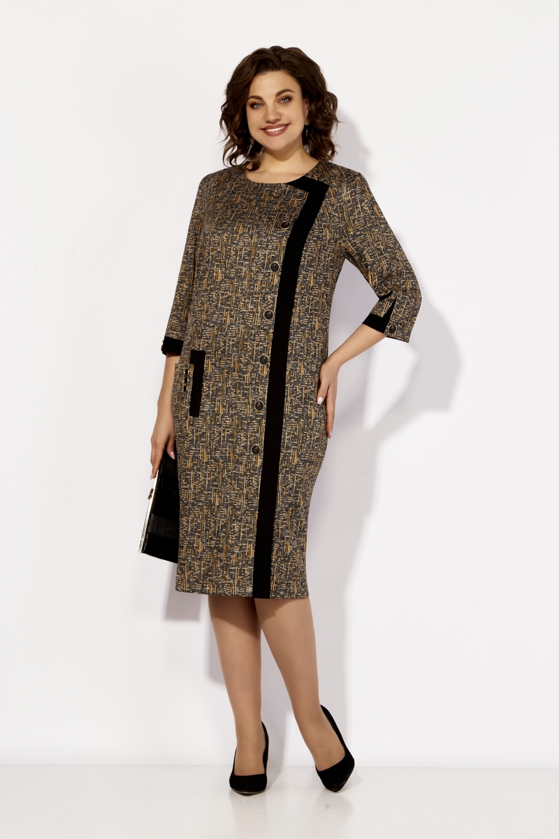 Модель Теллура-Л, М-1708Размеры: 54 - 64 Тип: Платье Состав ткани: 75% вискоза, 22% Пэ, 3% спандекс (трикотаж) Описание: Удобное платье для современной женщины которая хочет выглядеть хорошо. Предложенная модель платья полуприлегающего силуэта с ассиметричной полочкой, нагрудная выточка по левой стороне и рельефом с права, проходящим через центр груди. В области рельефа вставка из однотонной ткани, что является отделочным элементом и зрительно вытягивает фигуру. Отделка данной модели выполнена в сочетании двух видов материала и современной фурнитуры, что придаёт платью особенную изюминку. Спинка со средним швом застёжкой на потайную молнию. Талиевые вытачки подчёркивают фигуру. Рукав ¾ с интересной обработкой шлицы. Длина платья 56р. ок. 101 см, 62р. ок. 102 см Длина рукава 56р. ок. 46 см, 62р. ок. 47 см НАЗАД К КОЛЛЕКЦИИ |