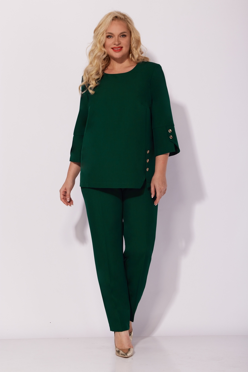 Модель Теллура-Л, М-1698Размеры: 50 - 60 Тип: Костюм Состав ткани: 38% вискоза, 57% ПЭ, 5% эластан (текстиль) Описание: Сегодня уже практически не возможно представить гардероб женщины без элегантного брючного костюма. Универсальный и удобный брючный костюм предназначен для повседневной носки и торжественных мероприятий. Костюм двух предметный, состоящий из блузона и брюк, выполнен из текстильной ткани. Блузон прямого кроя, круглой горловиной, с левой стороны по рельефу отделочный элемент в виде шлицы с тремя пуговицами. Рукав одношовный втачной ¾ длиной, по низу рукава манжет с двумя пуговицами. Брюки классические слегка заужены к низу, на притачном поясе. Спереди обработана застёжка на тесьму «молния». По передней половинке брюк бочки имитирующие карман. Длина блузона ок. 66 см Длина рукава ок. 47 см Длина брюк ок. 100 см НАЗАД К КОЛЛЕКЦИИ |