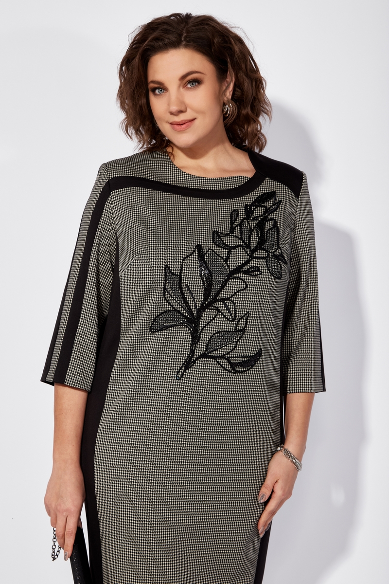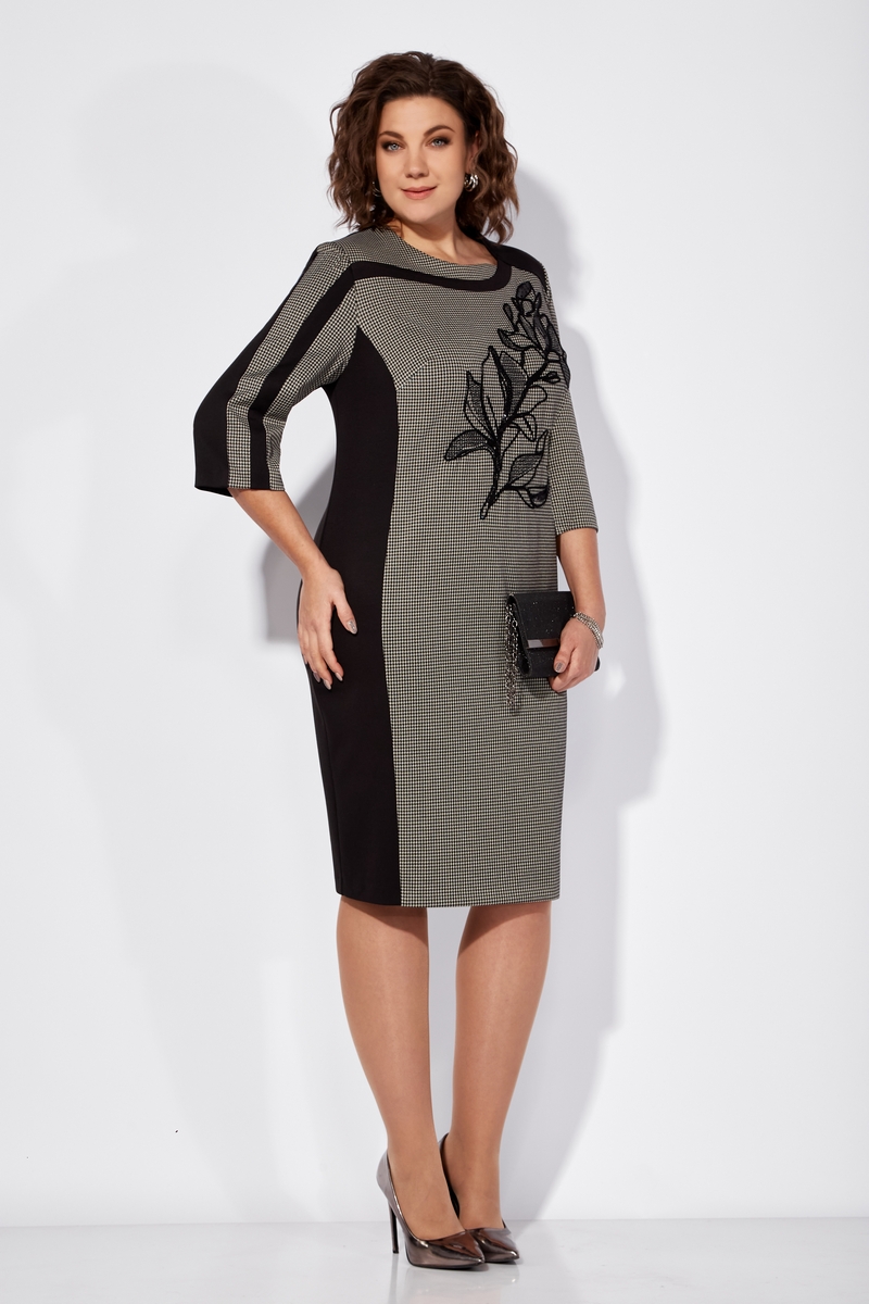 Модель Теллура-Л, М-1714Размеры: 54 - 64 Тип: Платье Состав ткани: 75% вискоза, 22% Пэ, 3% спандекс Описание: Стильное и элегантное женское платье полуприлегающего, подчеркивающего фигуру силуэта, выполнено из качественного трикотажного полотна с дизайном и однотонном. Длина платья до колена, длина рукава -3/4. Вертикальные линии кроя, визуально вытягивающие фигуру, контрастные вставки спереди и по рукаву, фигурная горловина притягивающая внимание к линии шеи - формула, по которой создается интересный и, безусловно, интеллектуальный образ. Особую неповторимость платью придает авторская вышивка с использованием разной толщины ниток и пайеток. Изделие отличается универсальностью и превосходно подойдет как для торжественных мероприятий, так и для повседневной носки. P.S. Данная модель доступна в двух вариантах. Со светлой отделкой и без нее. Длина платья ок. 102 см Длина рукава ок. 45 см НАЗАД К КОЛЛЕКЦИИ |