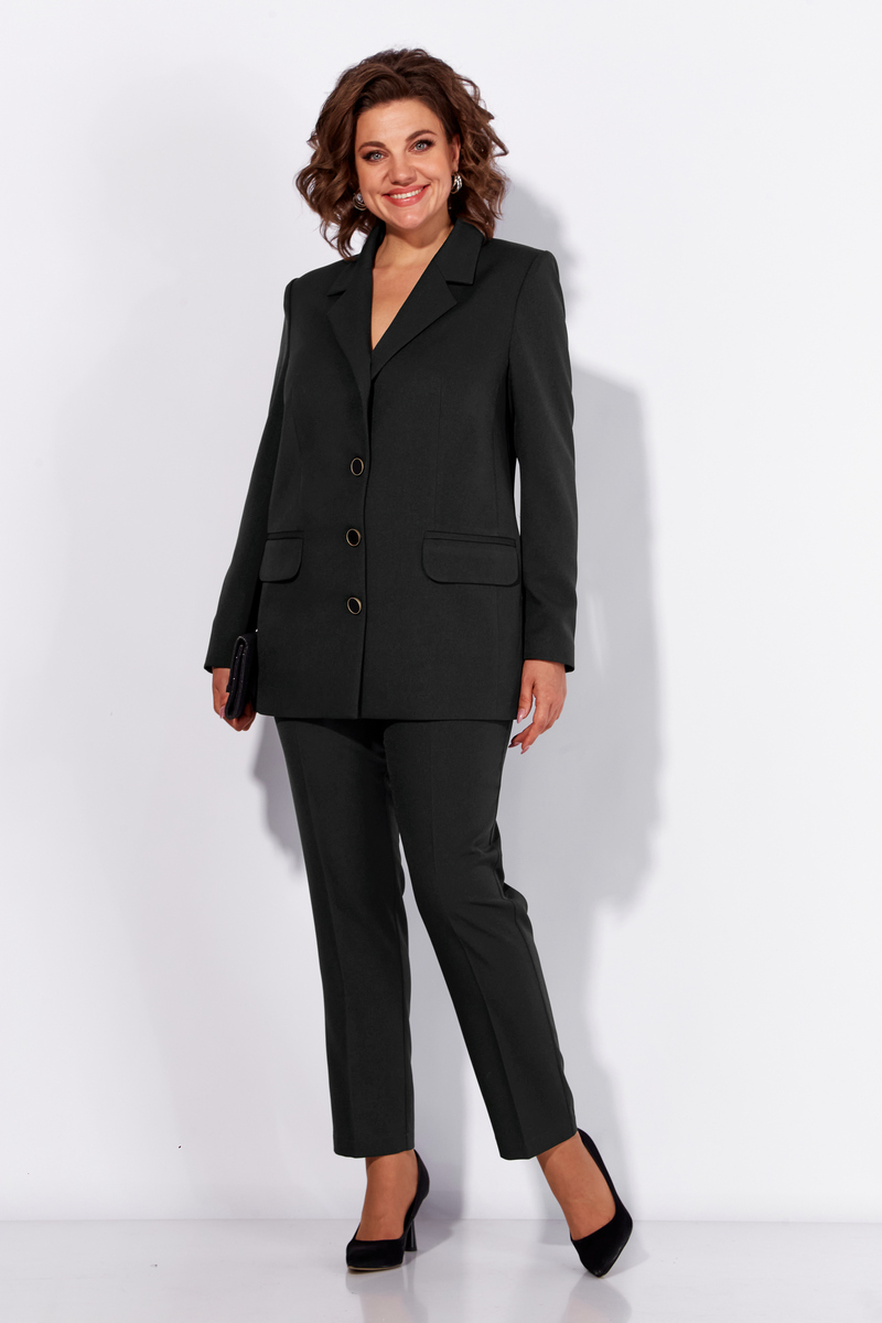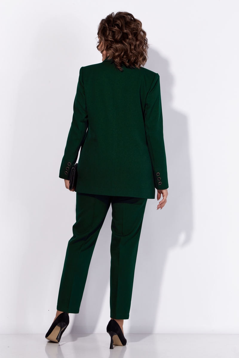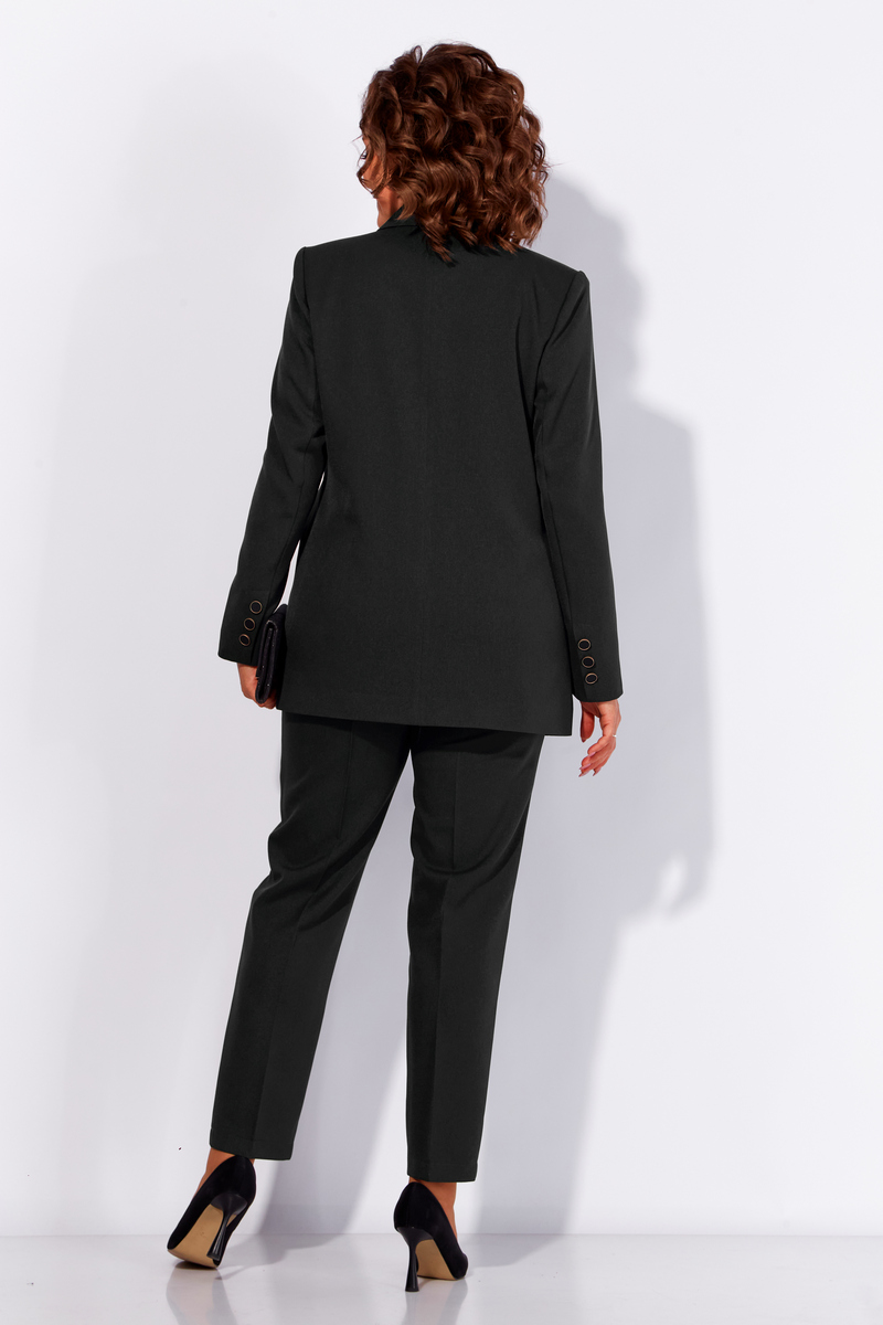 Предлагаемая нами модель состоит из жакета и брюк, выполненных из костюмного текстильного полотна.