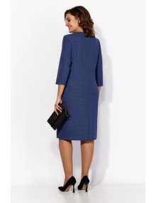 Имитация застежки по центральной части платья создает эффект полуоткрытого взгляда, придавая образу загадочность и недоступность. Рельефы на уровне бедер, округлой формы с отлетным клапаном, подчеркнутым кантом, придают фигуре изящный контур и потрясающий шарм.