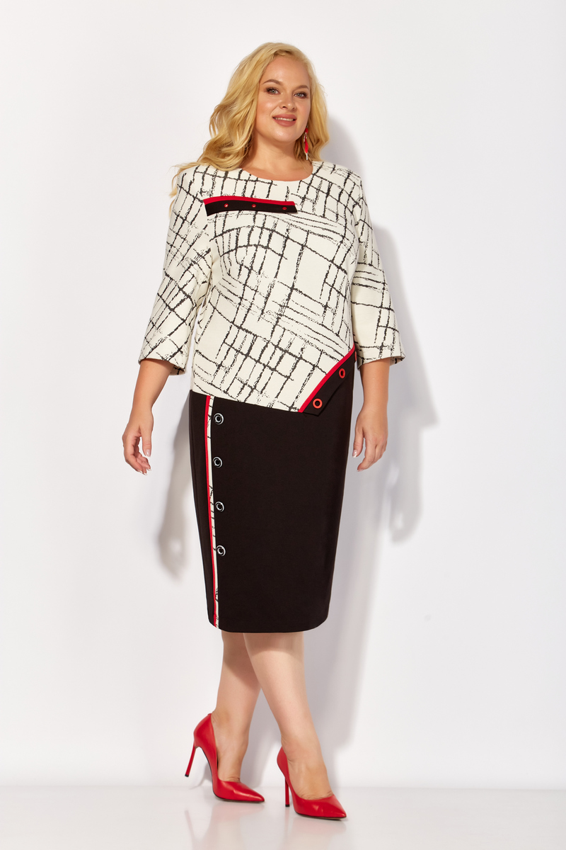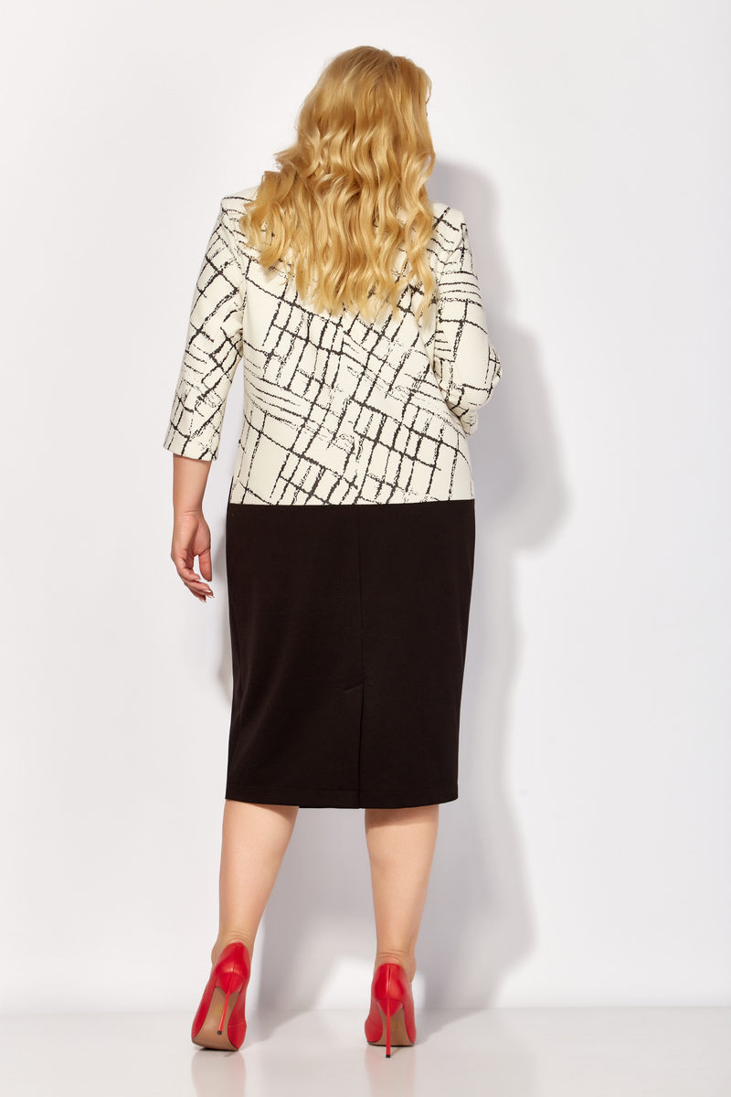 Модель Теллура-Л, М-1806Размеры: 54 - 64 Тип: Платье Состав ткани: 75% вискоза, 22% Пэ, 3% спандекс (трикотаж) Описание: Элегантное и изысканное, нарядное женское платье прямого, слегка приталенного силуэта, выполнено из трикотажного полотна. Вырез горловины округлый, подчеркнут фигурной ассиметричной планкой, на которой выполнена отделка в виде люверсов. Платье выполнено как имитация костюма, этот эффект создается за счет фигурного низа, частично оформленного планкой контрастного цвета с кантом, по планке выполнена отделка в виде люверсов Рукав втачной, длиной ¾. Платье превосходно подойдет как для торжественных мероприятий, так и для повседневной носки. Не упустите возможность приобрести это нарядное платье, сочетающий в себе стиль, универсальность и комфорт. Длина платья ок. 107 см Длина рукава ок. 46 см НАЗАД К КОЛЛЕКЦИИ |