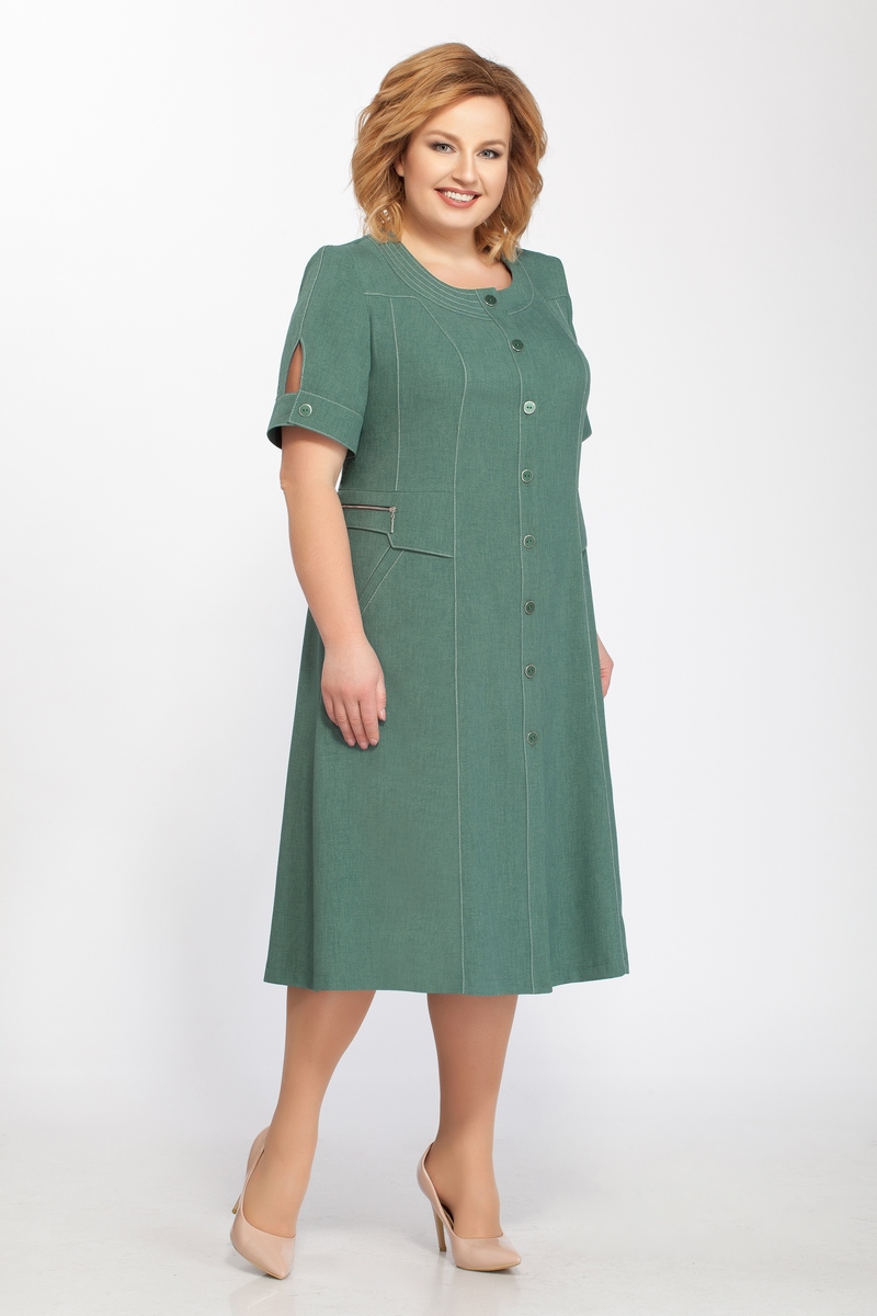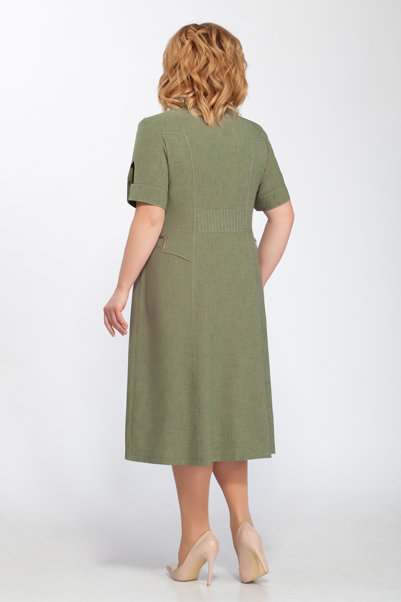 Модель Теллура-Л, М-1397Размеры: 54 - 64 Тип: Платье Состав ткани: 60% лен, 35% Пэ, 5% спандекс, текстиль, плательная ткань лён-вишер; Описание: Платье женское полуприлегающего силуэта с круглым вырезом горловины, с длиной за колено, с центральной планкой на петли и пуговицы. Перед с рельефами, прорезными карманами с листочкой, с ассиметричной бейкой по горловине. Спинка отрезная по линии талии. Бочки переда и спинки оформлены отделочными клапанами с декоративной молнией. Рукав втачной на манжете. Ширина рукава в низу регулируется петлей и пуговицой на манжете.