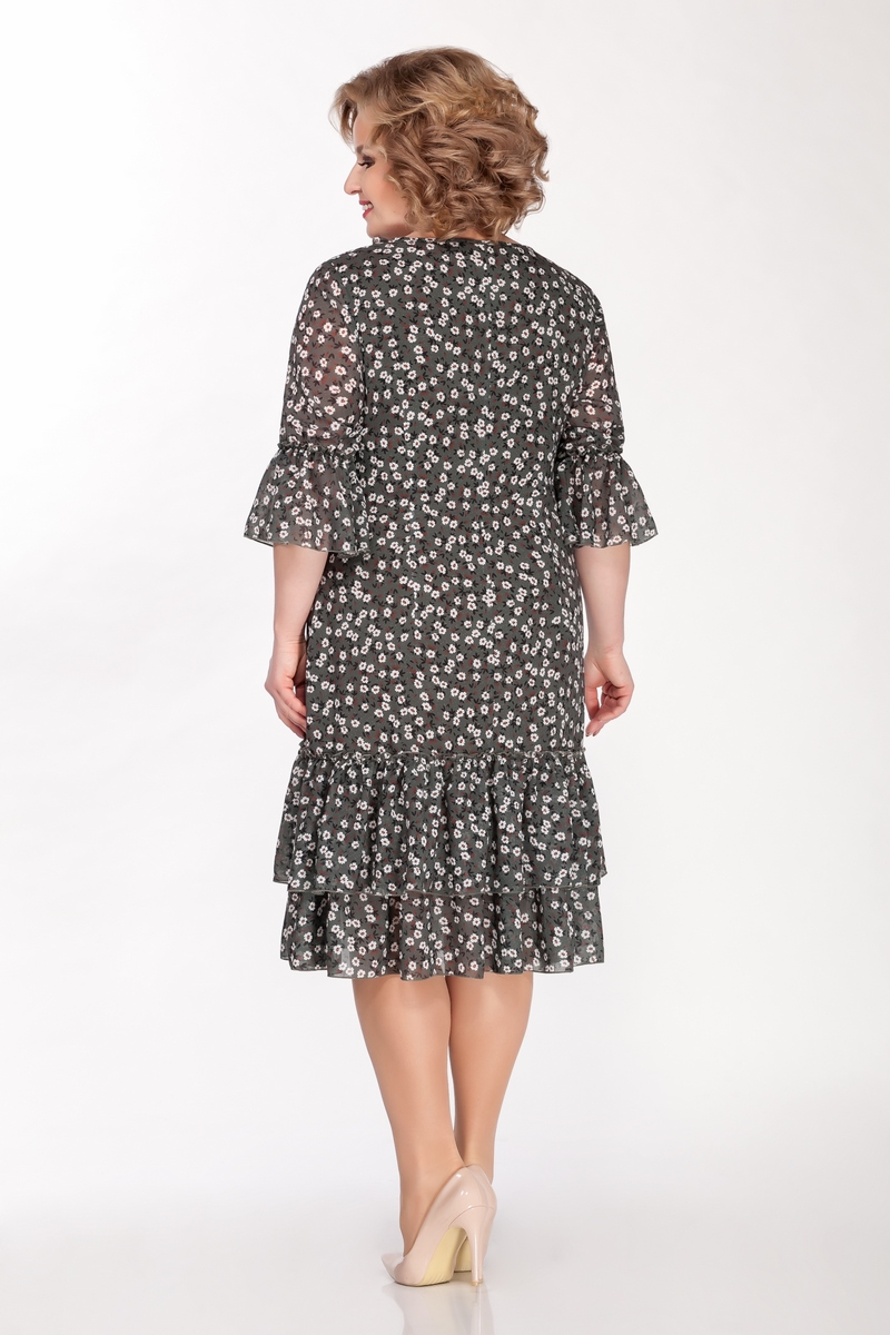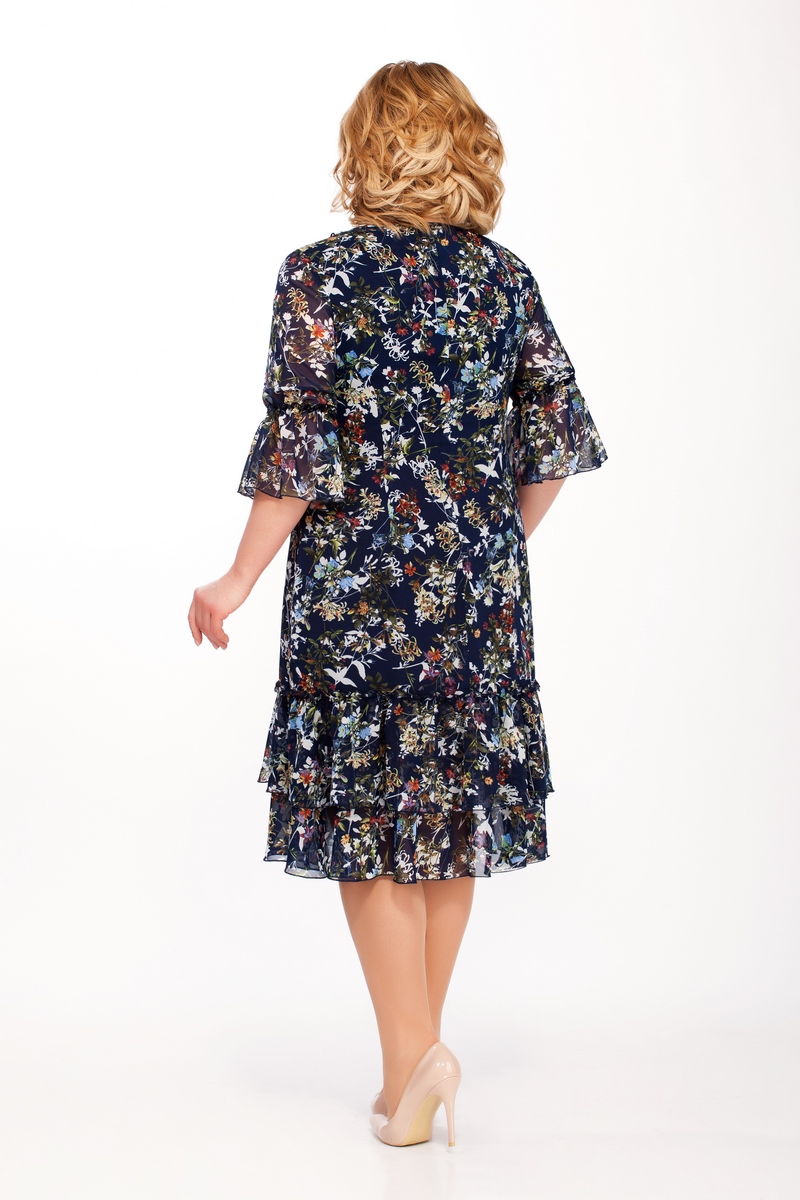 Модель Теллура-Л, М-1432Размеры: 52 - 56 Тип: Платье Состав ткани: 38% вискоза, 57% Пэ, 5% эластан Описание: Романтическое, воздушное платье из шифона на трикотажной подкладке, прямого силуэта с рюшами по низу. Горловина овальная с вырезом « капля» и рюшей. По переду обработаны нагрудные вытачки. Спинка со средним швом и талиевыми вытачками. Потайная молния в левом боковом шве. Рукав одношовный втачной с рюшей. Длина платья ок. 107 см. Длина рукава ок. 45 см. НАЗАД К КОЛЛЕКЦИИ |