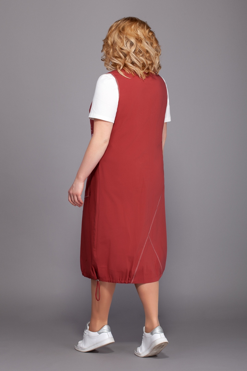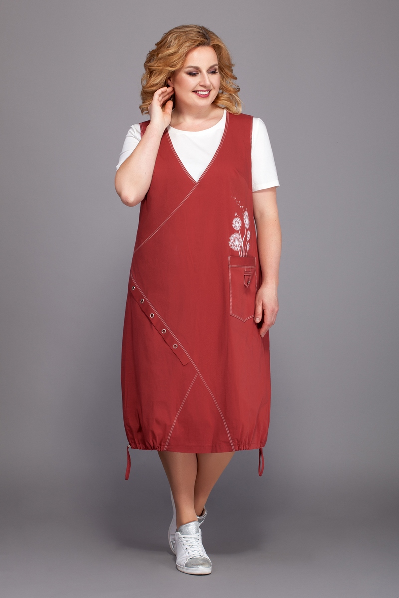Модель Теллура-Л, М-1441Размеры: 54 - 58 Тип: Комплект Состав ткани: 55% хлопок, 26% ПА, 15% ПЭ Описание: Комплект женский. Состоит из сарафана и футболки. Выполнен в спортивном стиле, всегда удобно и лаконично! Сарафан ассиметричного кроя с V- образным вырезом горловины, длиной ниже коленей. Перед с нагрудными вытачками, подрезами и накладным карманом с патой на пуговицу. В шве справа расположена планка с блочками. Спинка со средним швом и фигурными подрезами. Низ сарафана на кулисе. В качестве отделки – художественная печать, расположенная под верхним срезом кармана, и отделочные строчки контрастного цвета. Футболка с круглым вырезом горловины. Выполнена из трикотажного полотна. Перед с нагрудными вытачками. Рукав одношовный, втачной, короткий. Длина сарафана ок. 108 см. Длина футболки ок. 62 см Длина рукава ок. 23 см. НАЗАД К КОЛЛЕКЦИИ |
