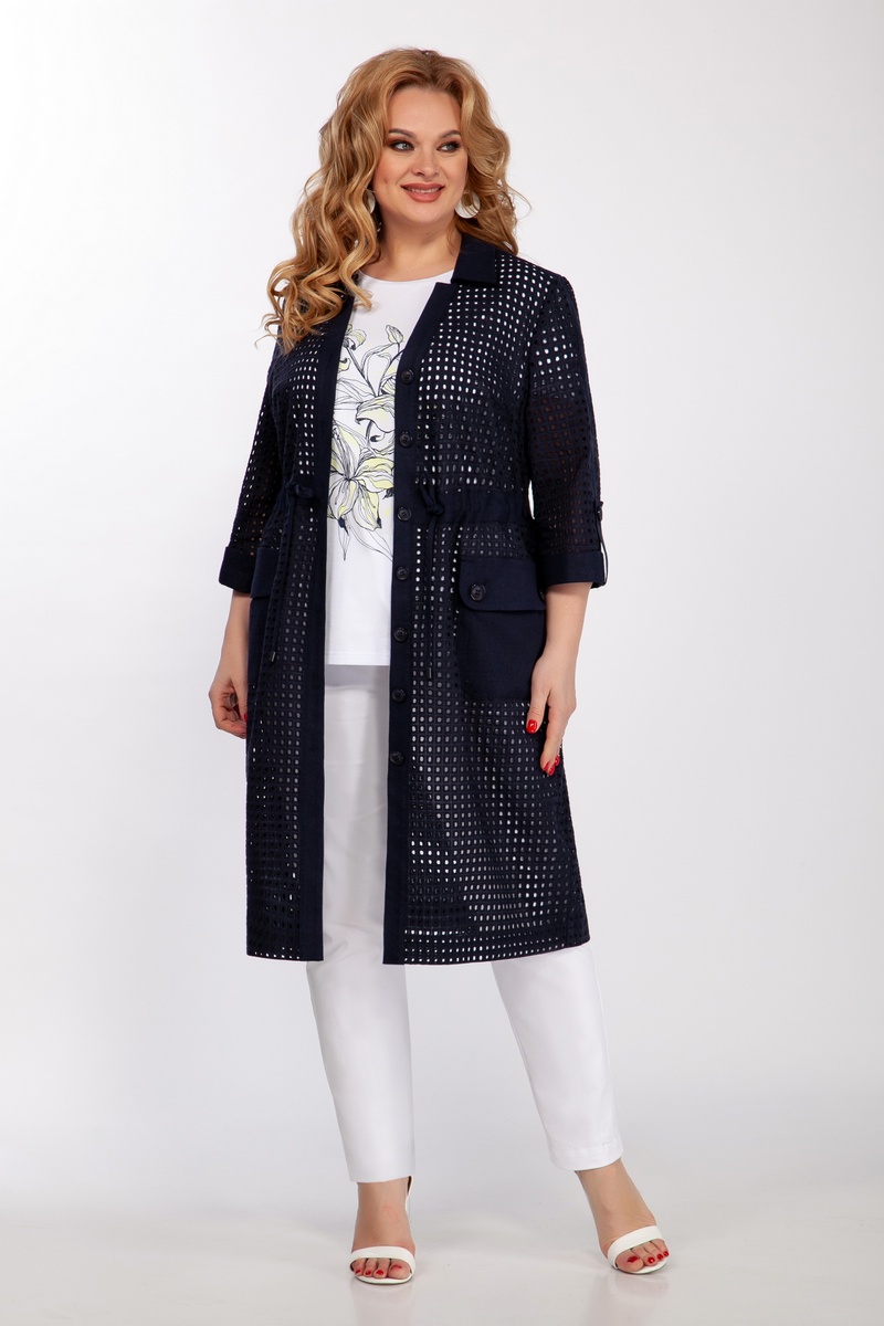 Модель Теллура-Л, М-1571Размеры: 52 - 56 Тип: Костюм Состав ткани: 63% хлопок, 33% нейлон, 4% спандекс «текстиль»; 96% хлопок, 4% спандекс «трикотаж» Описание: Универсальный женский комплект, состоящий из брюк, футболки и кардигана. Каждый из предметов можно носить отдельно, составляя новые луки. Сочетание нескольких видов тканей и интересной отделки делают этот комплект стильным. Футболка со спущенной линией плеча 3-Dпечатью, выполнена из высококачественной кулирки. Брюки выполнены из белого хлопка, по бокам пояс перфорирован эластичной тесьмой, что позволяет обеспечить хорошую посадку по фигуре. Кардиган прямого силуэта выполнен из ткани ришелье и льна. Рукав втачной, легко трансформируется 7/8, благодаря отличной манжете, которая фиксируется патой. Кардиган декорирован накладными карманами с клапаном и кулисой по линии талии. Застёжка кардигана центральная, на петли и пуговицы. Длина кардигана ок. 107 см Длина рукава ок. 50 см Длина футболки ок. 61 см Длина брюк ок. 107 см НАЗАД К КОЛЛЕКЦИИ |