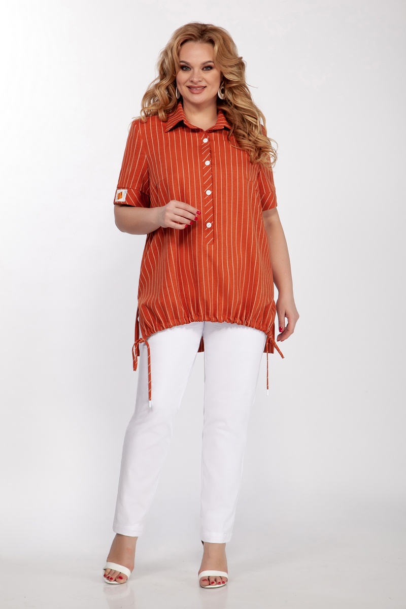 Модель Теллура-Л, М-1574Размеры: 52 - 56 Тип: Комплект Состав ткани: 85% лён, 10% Пэ, 5% ликра (для блузы); 63% хлопок, 33% нейлон, 4% спандекс (для брюк) Описание: Комплект женский состоящий из блузки и брюк. Блуза прямого силуэта. По переду застёжка на укороченную планку петли и пуговицы. Горловина обработана воротником на стойке. Рукав втачной на манжете. Спинка и перед блузы ассиметричен, по переду обработана кулиса. Брюки выполнены из джинсовой ткани в классическом стиле. По переду обработана имитация карманов. Пояс перфорирован эластичной тесьмой, что позволит обеспечить хорошую посадку на фигуре. Длина брюк ок. 103 см Длина блузы ок. 83 см (спинка удлинена) Длина рукав ок. 29 см НАЗАД К КОЛЛЕКЦИИ |