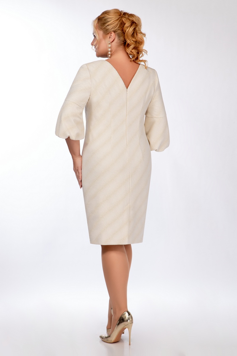 Модель Теллура-Л, М-1653Размеры: 52 - 56 Тип: Платье Состав ткани: 38% вискоза, 57% ПЭ, 5% эластан (текстиль) Описание: Нарядное, очень элегантное, выполненное из текстильной ткани с жаккардовым переплетением с добавлением люрексовой нити. Платье на трикотажной подкладке, полуприлегающего силуэта, длинной до колена. Горловина спереди в форме «лодочка», по спинке красивый V-образный вырез, визуально вытягивающий шею. «Изюминкой» данной модели являются рукава. Рукава втачные с притачеными по низу «фонариками». По переду обработаны нагрудные вытачки. По спинке средний шов с обработанными в нем потайной застежкой на тесьму «молния» и шлицей, а так же талиевые вытачки. В качестве декора в комплект к платью добавлена брошь. Данная модель сделает любую женщину очаровательной. Изделие станет прекрасным выбором для любого торжества. Длина платья ок. 103 см Длина рукава ок. 46 см НАЗАД К КОЛЛЕКЦИИ |