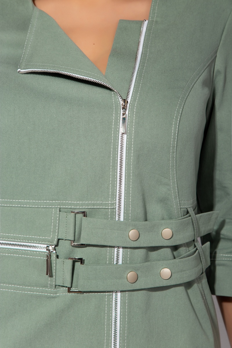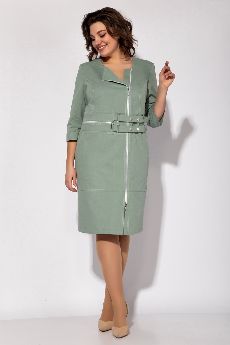 Модель Теллура-Л, М-1671Размеры: 52 - 62 Тип: Платье Состав ткани: 63% хлопок, 33% нейлон, 4% спандекс «текстиль» Описание: Джинсовое платье в стиле «Деним» полуприлегающего силуэта длиной до колена. Горловина круглая. Рукава втачные одношовные, длиной ¾ с притачной манжетой, которую можно отвернуть. Застёжка асимметричная на разъёмную тесьму «молния». По переду выполнены фигурные бочки с функциональными карманами. В области талии обработан интересный узел с декоративной застёжкой на тесьму «молния» и функциональными патами, застёгивающимися на кнопки. Для поддержания данного стиля добавлены горизонтальные и вертикальные подрезы, а так же контрастные двойные отделочные строчки. Множество отделочных строчек и усложняющих элементов, идеально подобранная фурнитура, всё это придаёт платью современности. Длина платья ок. 102 см Длина рукава ок. 45 см НАЗАД К КОЛЛЕКЦИИ |