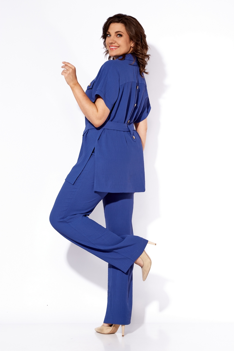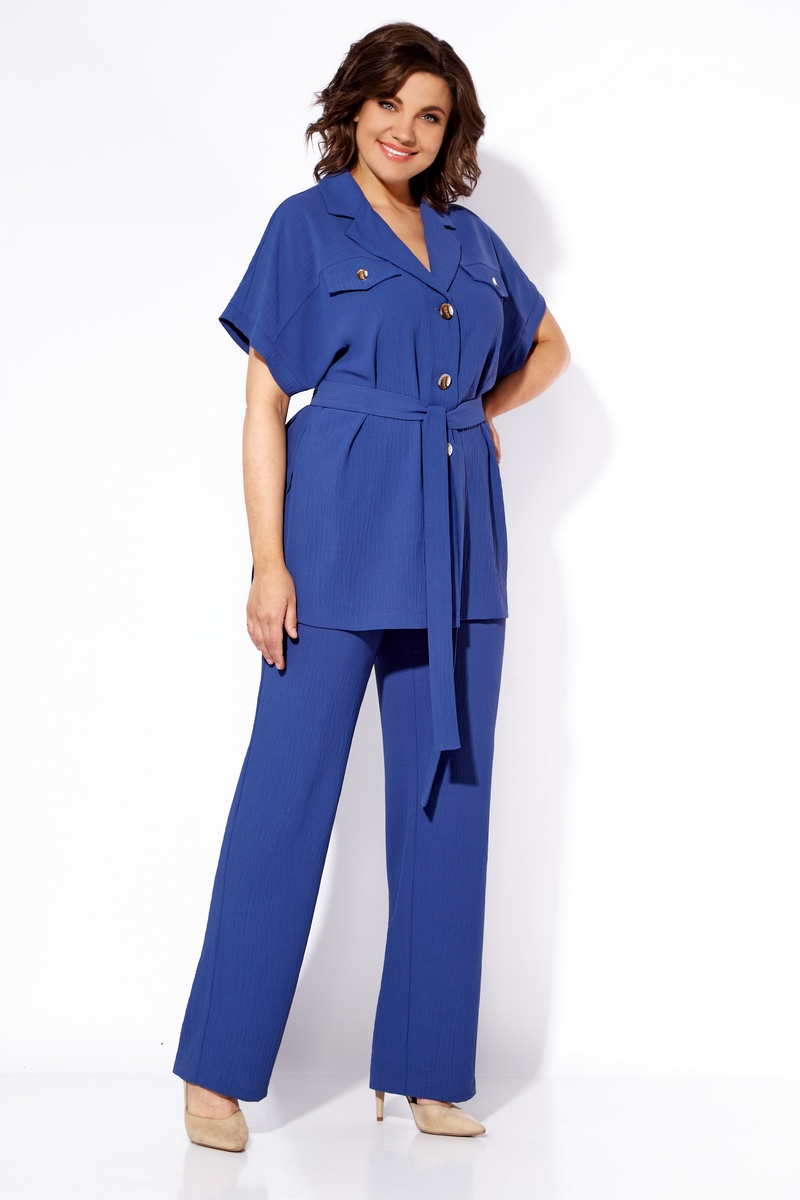 Модель Теллура-Л, М-1681Размеры: 50 - 60 Тип: Костюм Состав ткани: 38% вискоза, 57% ПЭ, 5% эластан (текстиль) Описание: Стильный летний, брючный костюм, выполненный из лёгкой приятной ткани. Жакет прямого силуэта, удалённый. Рукава цельнокроёные короткие с притачной по низу манжетой. Воротник пиджачного типа с лацканами. Застёжка центральная однобортная на три петли и пуговицы. По полочкам обработана кокетка с выходящими из неё клапанами. По спинке так же кокетка, из которой выходит пата, служащая шлёвкой для съёмного пояса. Пата и клапаны декорированы пуговицами. В боковых швах выполнены высокие разрезы. Брюки прямые. Пояс отрезной, по бокам и сзади на резинке. Костюм смотрится достаточно элегантно для того, что бы Вы смогли надеть его на все случаи жизни. Он подойдёт как для работы, так и для торжественных мероприятий. Длина жакета ок. 72 см Длина рукава ок. 20 см Длина брюк ок. 105 см НАЗАД К КОЛЛЕКЦИИ |