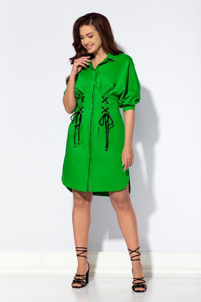 Модель Теллура-Л, М-1686Размеры: 46 - 50 Тип: Платье Состав ткани: 63% хлопок, 33% нейлон, 4% спандекс (текстиль) Описание: Стильное молодёжное платье-рубашка с оригинальным решением в области талии. Платье с эффектом корсета, благодаря чему Вы сможете подчеркнуть свою сексуальность. По горловине обработан рубашечный воротник на отрезной стойке. Застёжка центральная потайная но 10 петель и пуговиц. Рукава цельнокроёные длиной ¾. По низу присборенные, с отрезной манжетой, застёгивающейся на петлю и пуговицу. Низ изделия фигурный, по бокам с закруглёнными разрезами. Задняя часть длиннее, чем передняя. По переду и по спинке в области талии застрочены складки, в которых обработаны фигурные планки с люверсами. Через люверсы продет шнур, при помощи которого есть возможность регулировать приталивание платья. Правильно подобрав обувь к данной модели платья, Вы сможете грамотно обыграть весь образ. Длина платья ок. 100 см Длина рукава ок. 47 см НАЗАД К КОЛЛЕКЦИИ |