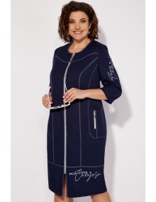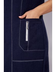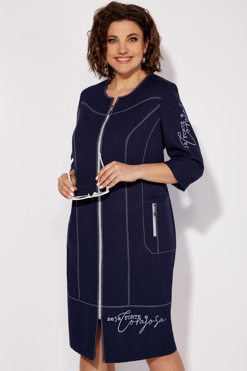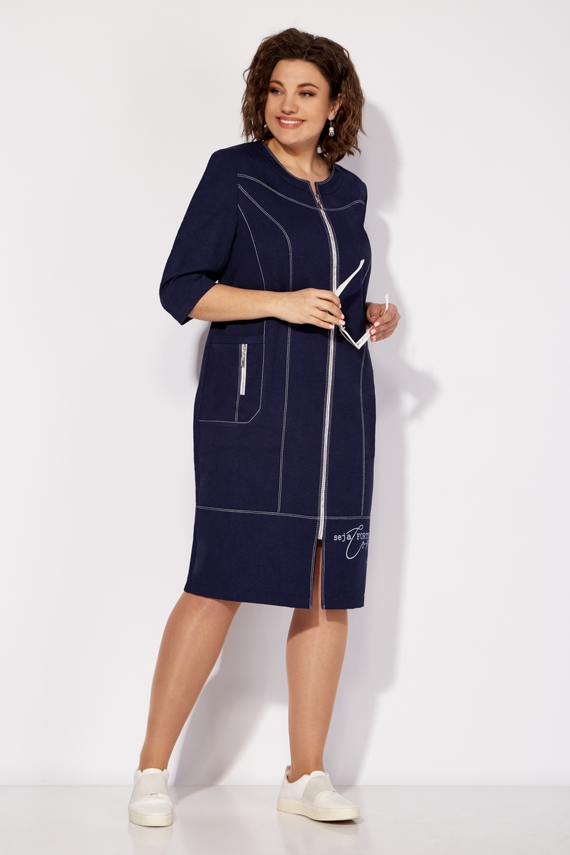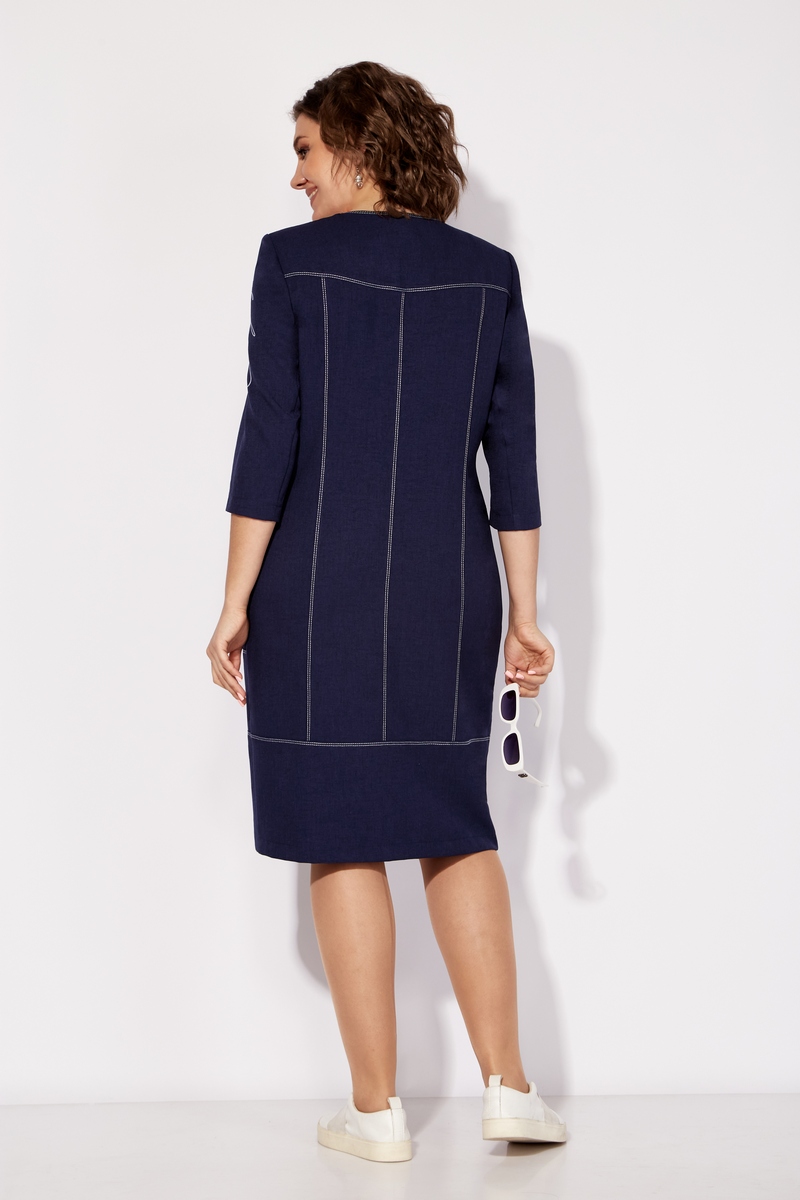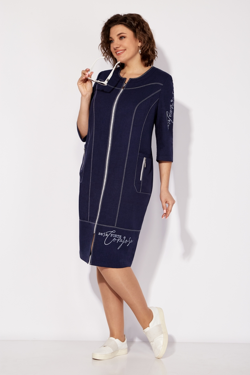 Модель Теллура-Л, М-1727Размеры: 54 - 58 Тип: Платье Состав ткани: 60% лён, 35% Пэ, 5% эластан (текстиль) Описание: Стильное женское платье, прямого силуэта. Выполнено из льна содержащего полотна с добавление вискозы. Застежка на тесьму – молнию по переду изделия. Рукав втачной, одношовный, длина чуть ниже локтя. По переду платья выполнена фигурная кокетка, рельефы, фигурные бочки в которых расположен карман, по которому расположена отделка в виде декоративной молнии. Вырез горловины округлый, оформлен плоско лежащей стойкой. Спинка с кокеткой, средним швом и рельефами. По низу выполнена притачная деталь. По всем швам отделка на двух игольной машине контрастными нитками. По одному рукаву и по нижней детали платья выполнена термопечать. Изделие отличается комфортом и удобством в носке, подойдет к любому летнему образу. Длина платья ок. 108 см Длина рукава ок. 35 см НАЗАД К КОЛЛЕКЦИИ |