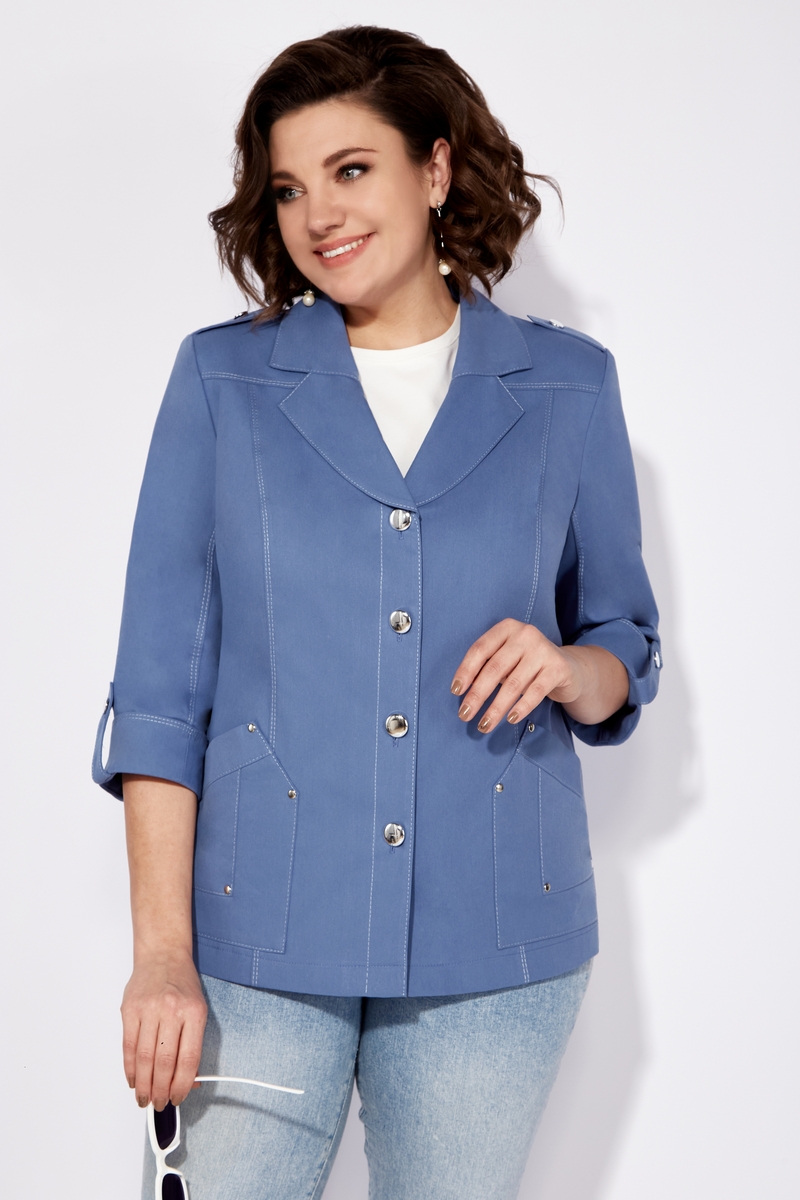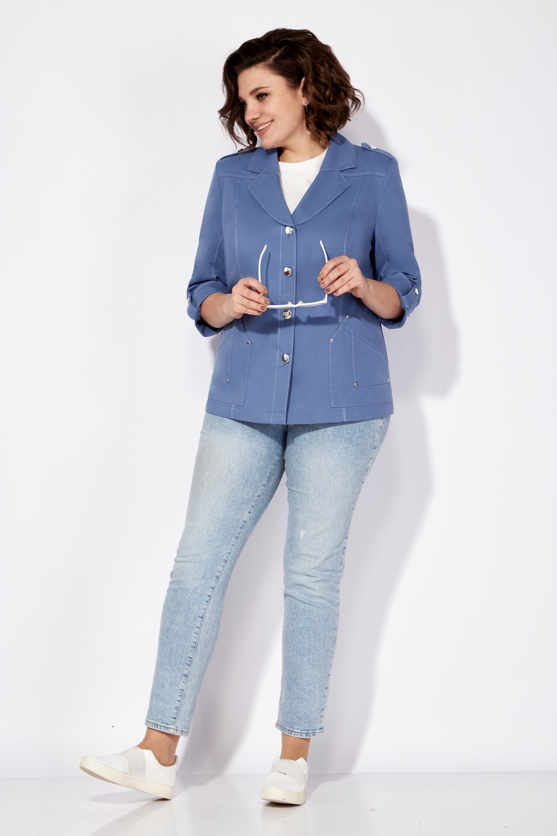 Модель Теллура-Л, М-1729Размеры: 54 - 58 Тип: Жакет Состав ткани: 63% хлопок, 33% нейлон, 4% спандекс (текстиль) Описание: Стильный женский жакет выполнен в спортивно-повседневном стиле из натурального джинсового хлопкового материала. Изделие станет прекрасным дополнением в гардеробе любой модницы, прекрасно подойдет для повседневной носки. Жакет прямого слегка приталенного силуэта. По переду фигурная кокетка, рельефы, ниже линии талии выполнен накладной фигурный, ассиметричный карман с отделкой в виде хольнитенов. Вырез горловины V-образный оформлен цельнокроеным воротником стойкой. Застежка на петли-пуговицы по центральной части переда. Спинка со средним швом, рельефами, кокеткой. Рукав втачной, двухшовный, по низу с притачной манжетой, крепящейся на пуговицу. По всем швам на жакете выполнена отделочная строчка контрастными нитками. Длина жакета ок. 63 см Длина рукава ок. 42 см НАЗАД К КОЛЛЕКЦИИ |