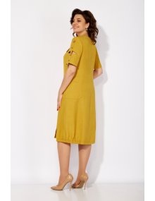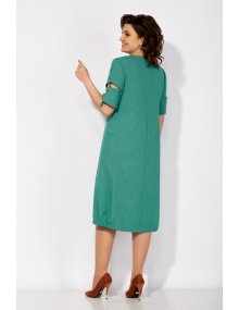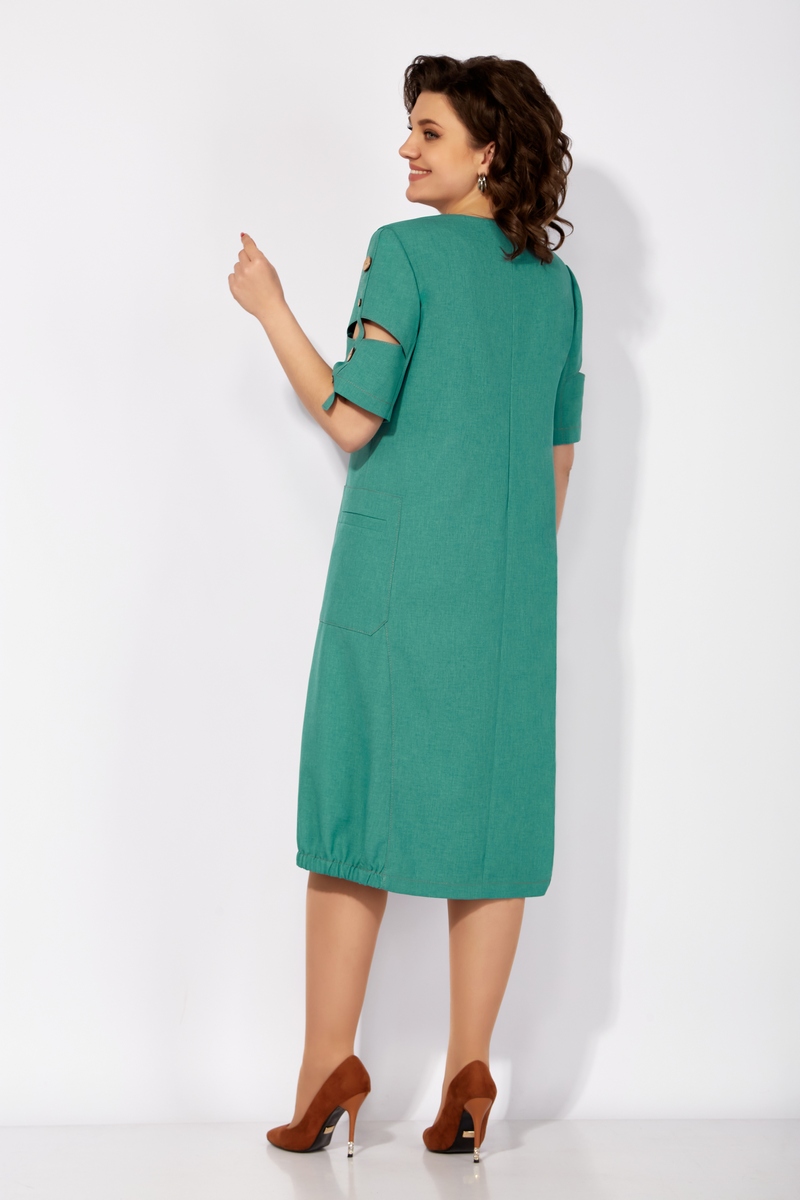 Модель Теллура-Л, М-1736_Размеры: 54 - 64 Тип: Платье Состав ткани: 60% лён, 35% Пэ, 5% эластан (текстиль) Описание: Стильное женское платье силуэта типа «баллон», по низу частично собрано на резинку, выполнено из лён содержащего текстильного материала, не мнущегося и обладающего превосходной износостойкостью. Горловина округлая. По переду платья выполнена кокетка, в которой расположен клапан и подрезы-рельефы от линии бедер, по низу формирующие разрезы. На уровне бедер, по боковой части платья, расположен накладной фигурный карман, с входом оформленным листочкой. Особенность платья - сложный рукав состоящий из нескольких частей, паты, по всей длине рукава с расположенными по ней пуговицами в качестве отделки, и, нижней и верхней частями формирующими разрез. Спинка со средним швом, в котором по верху выполнена застежка на потайную тесьму-молнию. По всем швам выполнена отделочная строчка контрастными нитками. Платье прекрасно подойдет как для повседневной носки, так и для выхода в свет. Легко обыгрывается аксессуарами. Длина платья ок. 109 см Длина рукава ок. 28 см НАЗАД К КОЛЛЕКЦИИ |