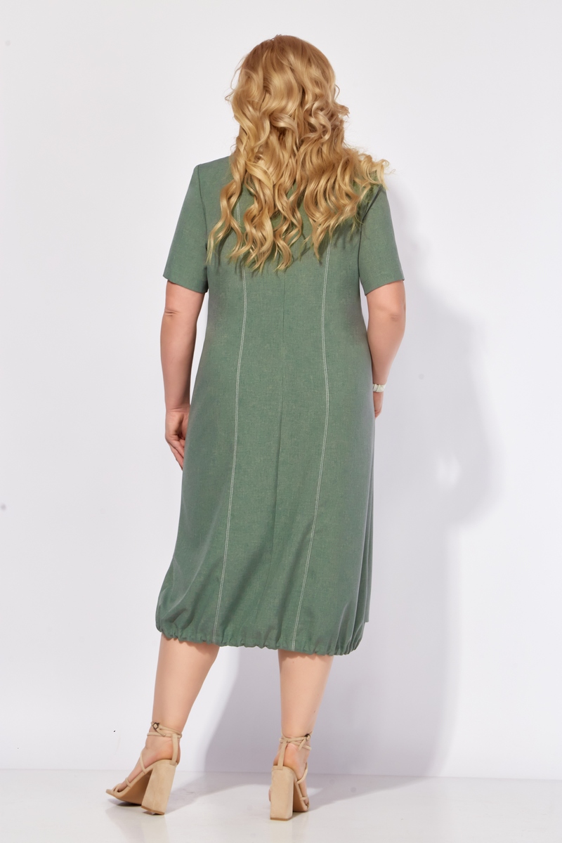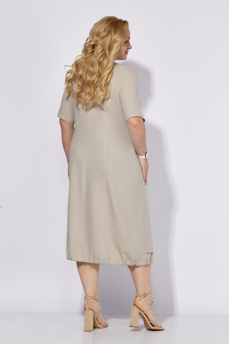 Модель Теллура-Л, М-1785Размеры: 54 - 64 Тип: Платье Состав ткани: 60% лён, 35% Пэ, 5% эластан (текстиль) Описание: Платье женское, летнее, выполнено из льносодержащего полотна. Силуэт свободный, стиль "бохо". Предназначено для повседневной носки в летний период. Силуэт: Свободный, слегка притален, к низу расширен со сборкой на резинку. Подчеркивает естественность и комфорт, что соответствует актуальной тенденции к расслабленным формам в одежде. Линия плеча: Естественная. Длина: Миди, чуть ниже колена. Горловина: Округлая Застежка: На потайную тесьму-молнию в среднем шве по спинке. Линия талии: Горизонтальный подрез. Акцент на талии, но без стеснения движений. Юбка:От подреза по талии выполнен отлетной элемент крепящийся на пуговицы по правой стороне, а по левой расположен накладной карман с клапаном. Спинка: С рельефами для лучшей посадки по фигуре. Рукав: Втачной, короткий. Подчеркивает легкость и летнее настроение платья. Материалы:Льносодержащее полотно. Лен – натуральный, дышащий материал, идеально подходящий для летней одежды. Подчеркивает экологичность и близость к природе, что соответствует ценностям стиля "бохо" и современной моде на устойчивость. Использование льносодержащего полотна отражает тренд на осознанное потребление и выбор натуральных материалов. Свободный силуэт платья соответствует тенденции к расслабленной одежде, не сковывающей движения. Данное платье представляет собой стильный и комфортный вариант летней одежды, сочетающий в себе элементы бохо-шика, последние модные тенденции и практичность. Использование льносодержащего полотна делает его идеальным выбором для жаркой погоды, а продуманный крой обеспечивает свободу движений и подчеркивает достоинства фигуры.