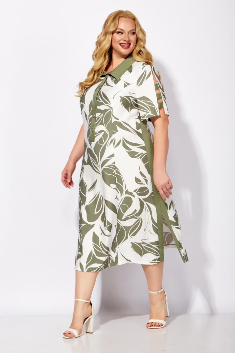 Модель Теллура-Л, М-1793Размеры: 54 - 64 Тип: Платье Состав ткани: 38% вискоза, 57% ПЭ, 5% эластан (текстиль) Описание: Стильное, легкое, нарядное летнее платье, свободного расширенного к низу силуэта. Выполнено из тонкой плательной ткани с оригинальным и современным дизайном, не мнущейся. В качестве отделки использованы вставки из однотонна. Застежка по центральной части платья на планку с петлями-пуговицами. Воротник отложной в рубашечном стиле. Вдоль бокового шва выполнены вставки из однотонна, этот отделочный элемент эффектно удлиняет и сужает силуэт. По низу бокового шва выполнен длинный разрез. Изюминка платья - это оригинальный рукав, с разрезом по центральной части, соединенный перемычками из однотонной ткани. Длина рукава чуть выше локтя. Платье прекрасно подходит как для повседневной носки, так и для торжественных мероприятий. Длина рукава ок. 30 см Длина платья ок. 121 см НАЗАД К КОЛЛЕКЦИИ |