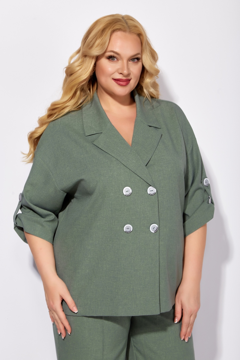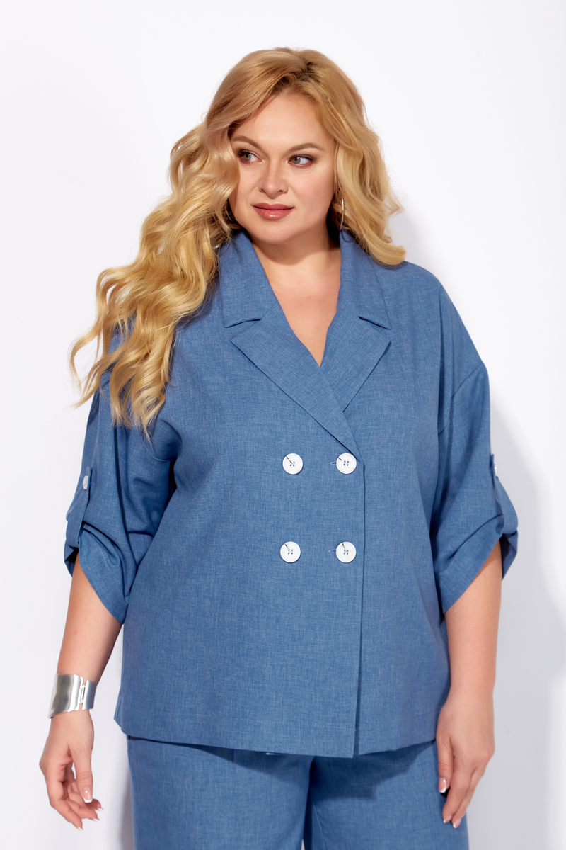 Модель Теллура-Л, М-1809Размеры: 46 - 56 Тип: Костюм Состав ткани: 60% лён, 35% Пэ, 5% эластан (текстиль) Описание: Модные и стильные брючные костюмы – это идеальный выбор для работы. Правильно подобранная модель выгодно подчеркнет фигуру, но не создаст и намека на игривость. Поэтому классический костюм с брюками прекрасно вписывается даже в самый строгий офисный дресс-код. Предлагаемая нами модель состоит из жакета и брюк, выполненных из костюмного текстильного полотна. Жакет без подкладки, с V-образным вырезом, оформленный отложным воротником. Застежка ассиметричная, двубортная, на четыре петли-пуговицы. Рукав жакета выполнен на основе спущенной проймы, что придает образу мягкости и легкости. Длина рукава ¾, по низу выполнена пата. Брюки прямые, широкие, на притачном поясе с частичной сборкой на резинку и застежкой типа «гульфик» по передней части. Изысканный классический костюм такого фасона понравится женщинам ценящим стиль. Длина жакета ок 66 см Длина рукава ок 46 см Длина брюк ок 103 см НАЗАД К КОЛЛЕКЦИИ |