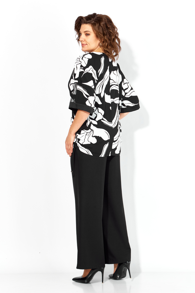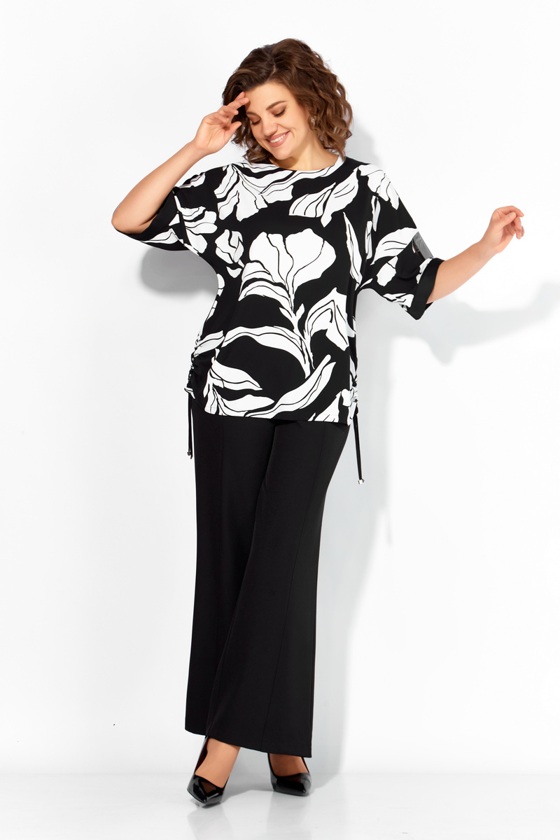 Модель Теллура-Л, М-1823Размеры: 52 - 62 Тип: Комплект Состав ткани: 38% вискоза, 57% ПЭ, 5% эластан (текстиль) Описание: Представляем Вашему вниманию элегантный женский комплект, состоящий из свободных, широких брюк и стильной блузы, выполненных из высококачественного материала. Этот модный ансамбль идеально сочетает в себе актуальные тенденции, комфорт и женственность, делая его незаменимым в гардеробе современной женщины. Блуза прямого свободного силуэта, изготовленная из мягкой и пластичной блузочно-плательной ткани, отличается кроем кимоно и округлым вырезом горловины, который нежно обрамляет шею, подчеркивая её линию. Контрастный принт придает модели особый шарм и уникальность, создавая интересные визуальные акценты. Этот дизайн не только привлекает внимание, но и эффективно скрывает небольшие недостатки фигуры, создавая иллюзию стройности. Блуза легко комбинируется с разными низами, позволяя создавать множество стильных образов. Брюки прямого, широкого кроя, оснащенные застежкой на тесьму и молнию, обеспечивают удобство и практичность в носке. Частично вставленная резинка по поясу добавляет комфорта, позволяя ткани свободно обтекать фигуру, не сковывая движений. Этот элемент гарантирует, что брюки безупречно сидят на талии и создают гармоничный профиль, что особенно актуально в современных модных тенденциях, акцентирующих внимание на естественной красоте фигур. В этом комплекте Вы не только будете выглядеть стильно, но и почувствуете уверенность благодаря удачному сочетанию тканей, дизайна и комфорта. Создайте свой уникальный стиль с этим великолепным комплектом, который преображает каждый день в праздник моды!