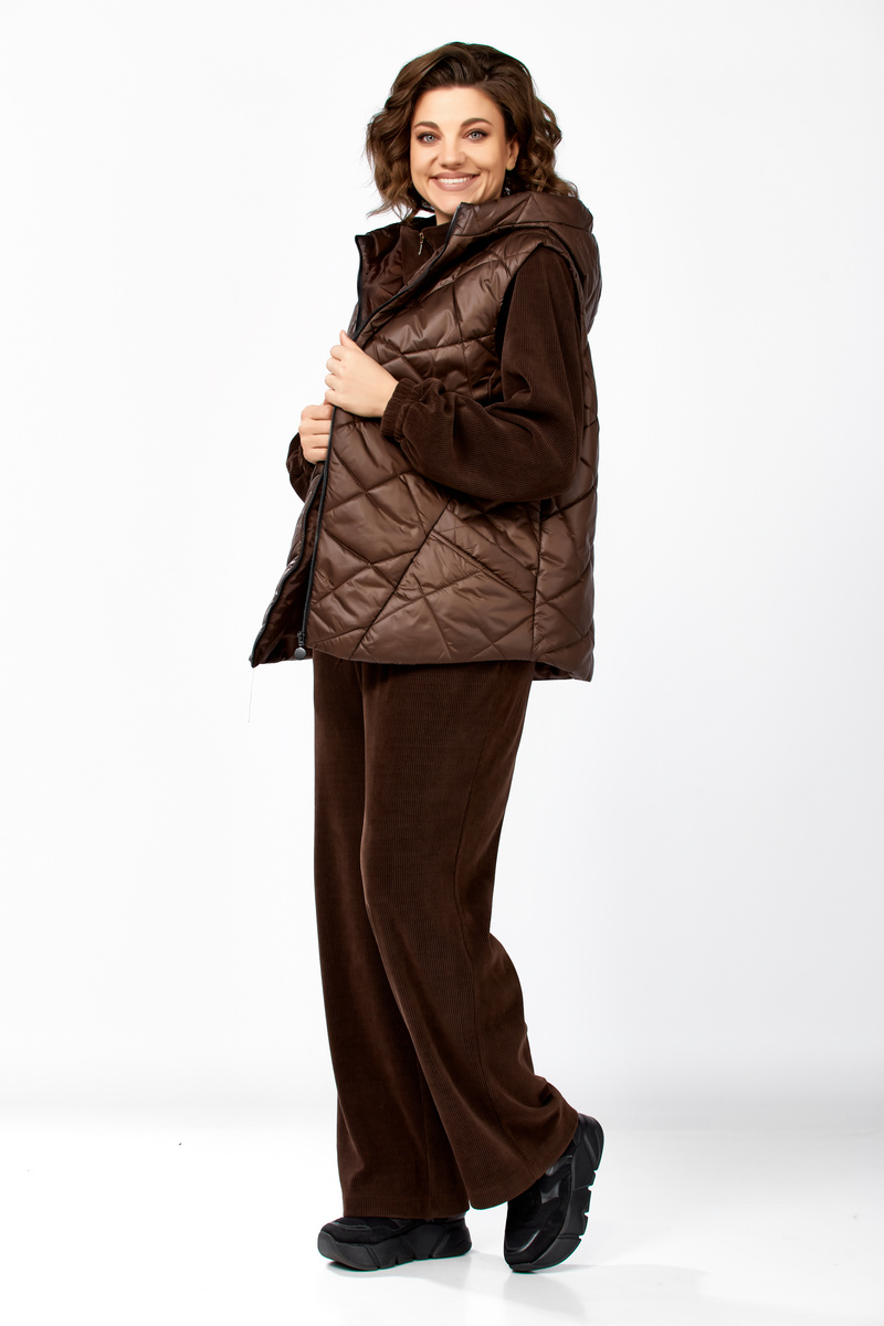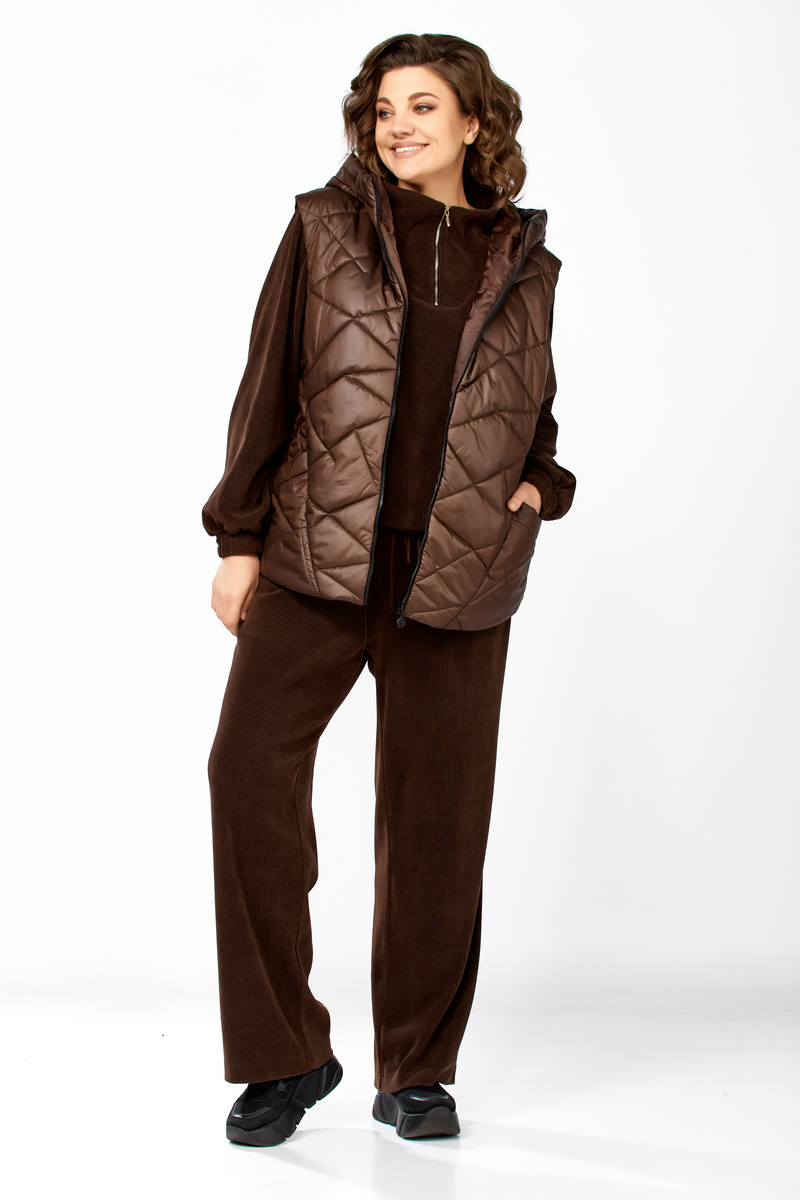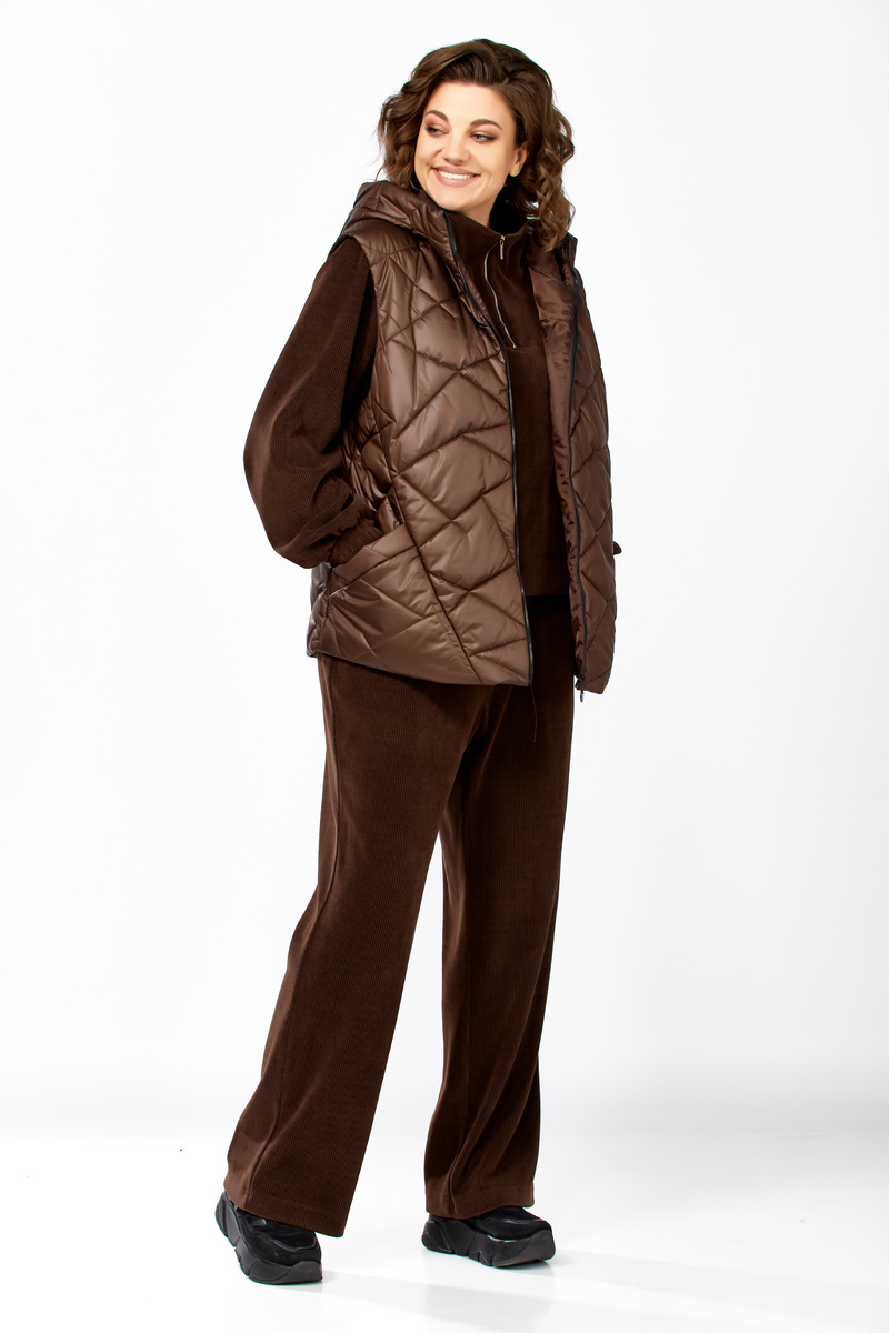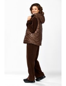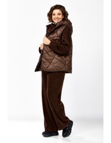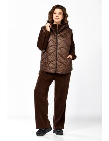 Модель Теллура-Л, М-1824Размеры: 48 - 58 Тип: Комплект Состав ткани: 75% вискоза, 22% Пэ, 3% спандекс Описание: Стильный женский брючный комплект в спортивном стиле, жилетка и брюки со свитшотом. Подойдёт для повседневных будней и прогулок. Выполнен из двух видов ткани. Жилетка из плащёвки, стеганная, на синтепоне, на подкладке. Жилетка прямого силуэта в стиле «Oversize», удлинённая сзади, с капюшоном. По переду обработаны фигурные подрезы, в которых выполнены функциональные карманы. По центру куртки обработана застежка на тесьму «молния». Мягкие и удобные спортивные брюки из трикотажного вельвета. Пояс на резинке. В боковых швах обработаны функциональные карманы. Свитшот прямого свободного силуэта, с рукавом на спущенной пройме, горловина обработана отложным воротником, застегивающимся на молнию. Данный комплект не оставит равнодушной ни одну модницу. Изделие станет прекрасным выбором для прохладной погоды.