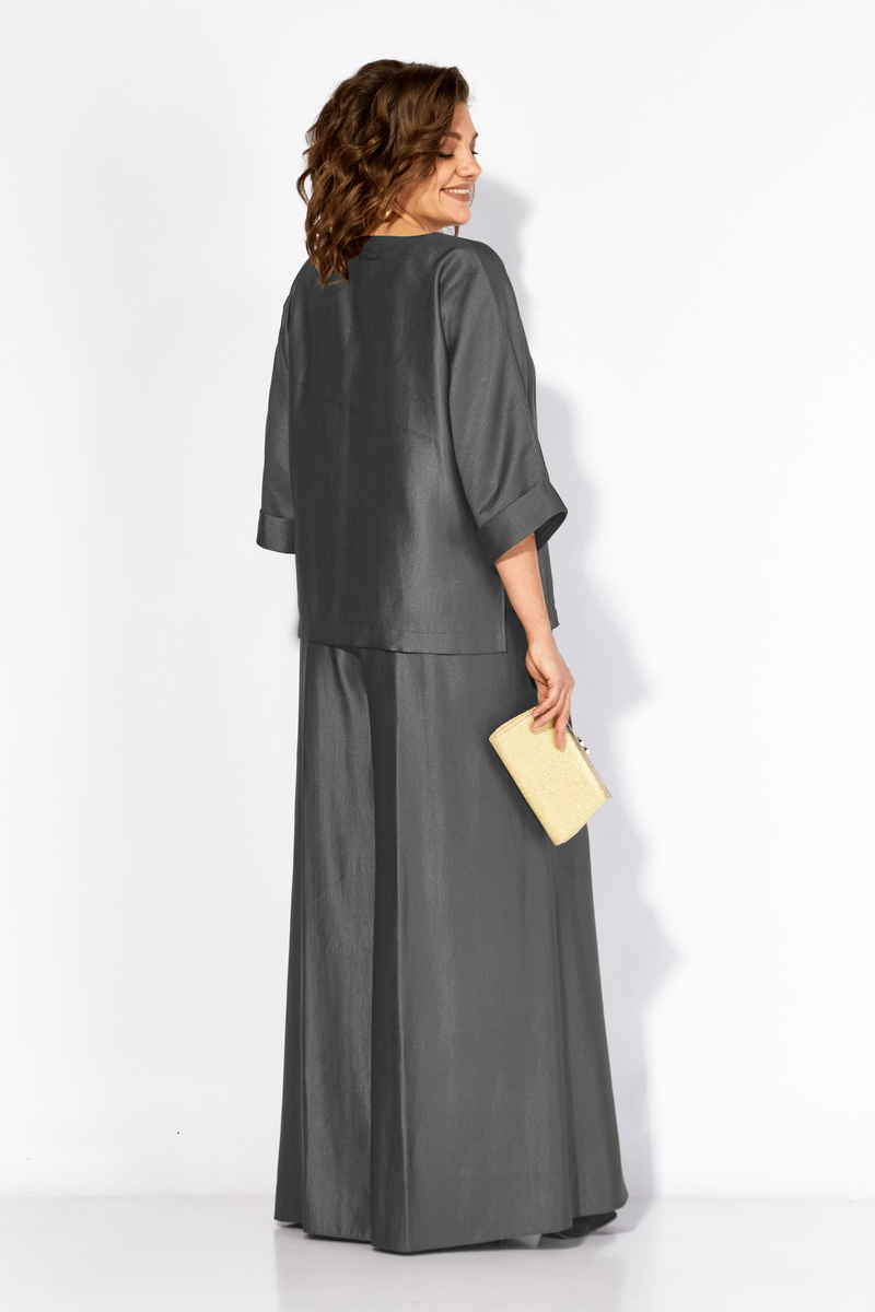 Модель Теллура-Л, М-1830Размеры: 46 - 56 Тип: Комплект Состав ткани: 38% вискоза, 57% ПЭ, 5% эластан (текстиль) Описание: Нарядный комплект выполнен в современном свободном силуэте, сочетающем комфорт и актуальные тренды. Комплект включает в себя брюки-юбку и блузон. Выполнен из струящейся ткани, с легким блеском. Этот модный ансамбль идеально сочетает в себе актуальные тенденции, комфорт и женственность, делая его незаменимым в гардеробе современной женщины. Блузон свободный, слегка расширенный к низу. Длиной до середины бедра. Вырез горловины округлый, умеренной глубины.