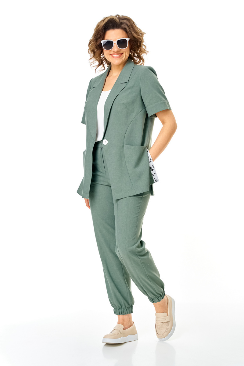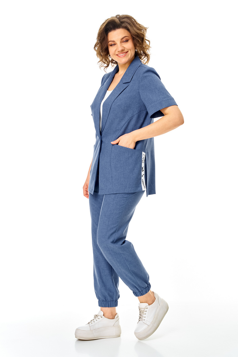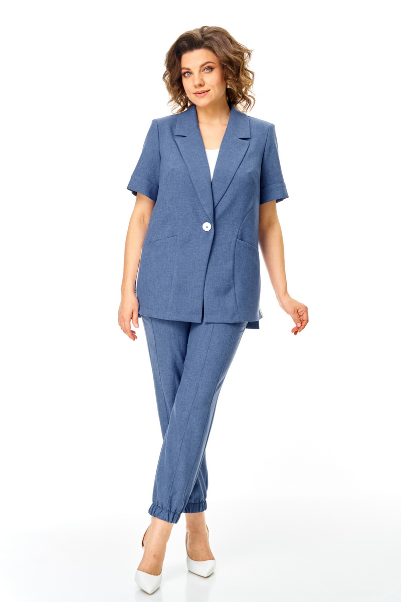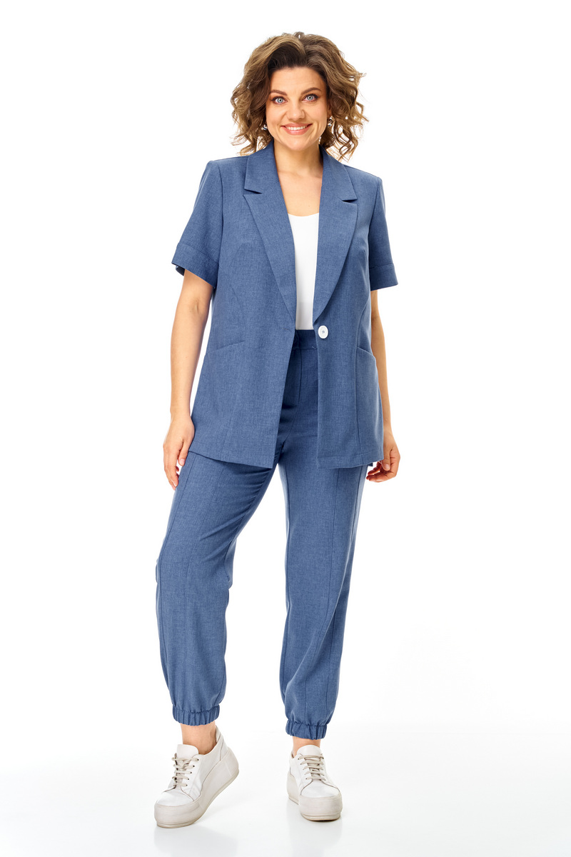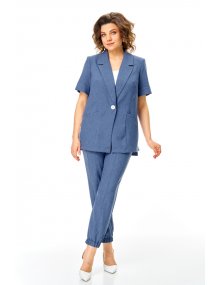 Модель Теллура-Л, М-1829Размеры: 50 - 64 Тип: Комплект Состав ткани: 60% лён, 35% Пэ, 5% эластан (текстиль) Описание: Стильный летний, 2-х предметный брючный комплект, брюки и жакет, выполненный из лёгкой лён содержащей ткани. Жакет прямого, свободного силуэта. Вырез V-образный, оформленный отложным аккуратным воротником. Застежка на пуговицу, по боковым швам выполнен разрез оформленный настрочной отделочной тесьмой контрастного цвета. Рукав втачной, короткий, что придает изделию спортивной и современной стилистики, низ рукава обработан манжетой.
