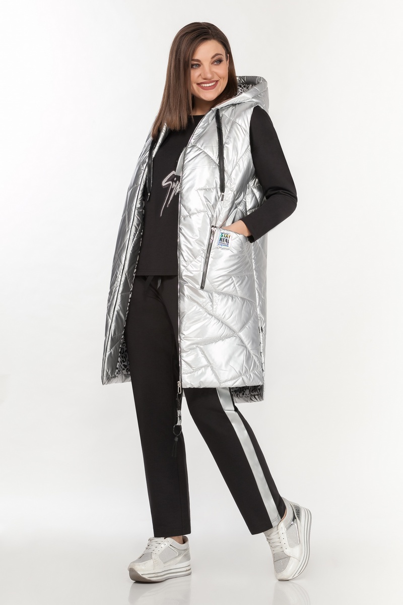 Модель Теллура-Л, М-1540Размеры: 48 - 56 Тип: Костюм Состав ткани: 100% Пэ (для жилета) текстиль; 75% вискоза, 22% Пэ, 3% спандекс (для костюма) трикотаж Описание: Модный женский спортивный костюм открывает Вам мир комфорта, выигрышно сочетается с красотой и стилем. Предлагаем Вам стильный спортивный костюм. Джемпер прямого силуэта со спущенной линией плеч, выполнен из высококачественного трикотажа. Полочка декорирована стильной печатью и карманом из «ЭКО кожи». Брюки прямые на поясе с резинкой по кругу и лампасами из кожи. Жилет удлинённый, выполнен из высококачественной стёганной ткани, цвета металлик, по переду, с застёжкой на молнию и накладными карманами декорированными молниями и нашивкой. Жилет с капюшоном и завязкой на шнур. Модель стильная и практичная. Длина жилета ок 99 см Длина джемпера ок 72 см (ассиметричный низ) Длина рукава ок 60 см Длина брюк ок 114 см НАЗАД К КОЛЛЕКЦИИ |