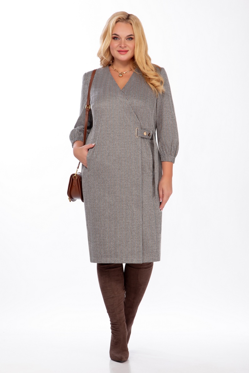Модель Теллура-Л, М-1652Размеры: 52 - 56 Тип: Платье Состав ткани: 75% вискоза, 22% Пэ, 3% спандекс (трикотаж) Описание: Элегантное стильное женское платье полуприлегающего силуэта, выполненное из комфортного трикотажного полотна с модным рисунком «ёлочка». Платье с интересным кроем в виде имитации запаха. Горловина V-образная. Рукава втачные двух шовные, по низу, в верхней части обработана резинка. По переду выполнены бочки и нагрудные вытачки. В подрезе, имитирующем запах, внизу обработана отлетная шлица. В качестве декора по талии слева выполнен пояс, проходящий через металлический люверс, и застегивающийся на две кнопки. По спинке так же добавлен декоративный элемент в виде присборенной резинки по талии и двух пат с кнопками, который придает завершённость образа и особую стильность. Данная модель платья очень лаконичная, поэтому подойдет для деловых встреч, повседневных офисных будней, а так же для прогулок по городу. Длина платья ок. 106 см Длина рукава ок. 51 см НАЗАД К КОЛЛЕКЦИИ |