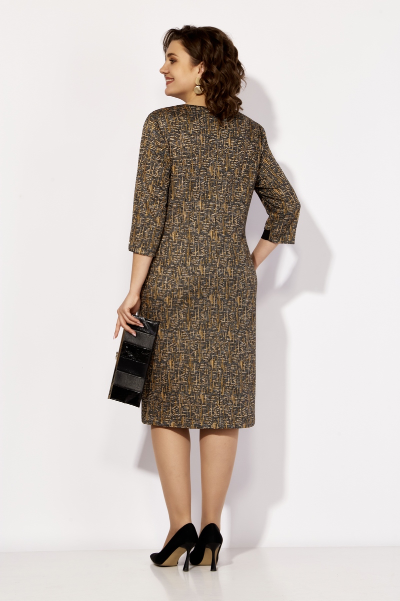 Модель Теллура-Л, М-1708Размеры: 54 - 64 Тип: Платье Состав ткани: 75% вискоза, 22% Пэ, 3% спандекс (трикотаж) Описание: Удобное платье для современной женщины которая хочет выглядеть хорошо. Предложенная модель платья полуприлегающего силуэта с ассиметричной полочкой, нагрудная выточка по левой стороне и рельефом с права, проходящим через центр груди. В области рельефа вставка из однотонной ткани, что является отделочным элементом и зрительно вытягивает фигуру. Отделка данной модели выполнена в сочетании двух видов материала и современной фурнитуры, что придаёт платью особенную изюминку. Спинка со средним швом застёжкой на потайную молнию. Талиевые вытачки подчёркивают фигуру. Рукав ¾ с интересной обработкой шлицы. Длина платья 56р. ок. 101 см, 62р. ок. 102 см Длина рукава 56р. ок. 46 см, 62р. ок. 47 см НАЗАД К КОЛЛЕКЦИИ |