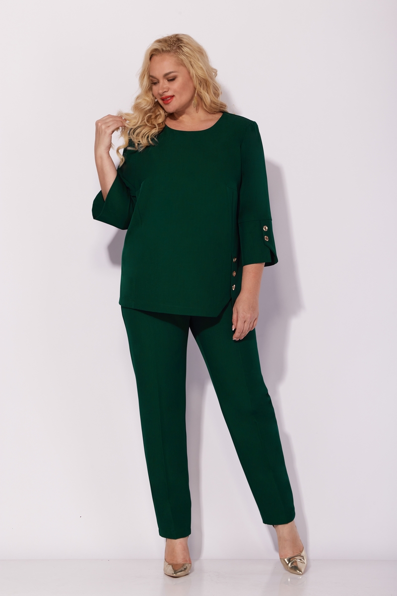 Модель Теллура-Л, М-1698Размеры: 50 - 60 Тип: Костюм Состав ткани: 38% вискоза, 57% ПЭ, 5% эластан (текстиль) Описание: Сегодня уже практически не возможно представить гардероб женщины без элегантного брючного костюма. Универсальный и удобный брючный костюм предназначен для повседневной носки и торжественных мероприятий. Костюм двух предметный, состоящий из блузона и брюк, выполнен из текстильной ткани. Блузон прямого кроя, круглой горловиной, с левой стороны по рельефу отделочный элемент в виде шлицы с тремя пуговицами. Рукав одношовный втачной ¾ длиной, по низу рукава манжет с двумя пуговицами. Брюки классические слегка заужены к низу, на притачном поясе. Спереди обработана застёжка на тесьму «молния». По передней половинке брюк бочки имитирующие карман. Длина блузона ок. 66 см Длина рукава ок. 47 см Длина брюк ок. 100 см НАЗАД К КОЛЛЕКЦИИ |