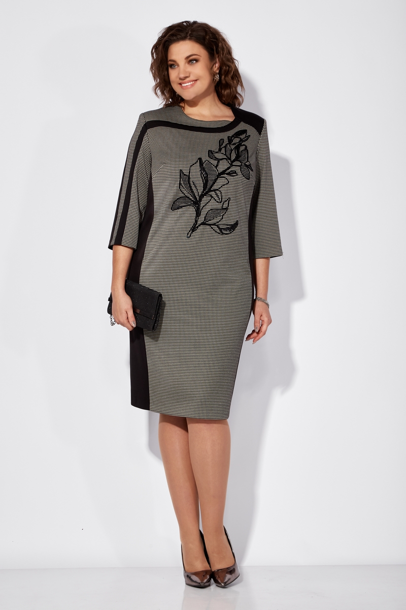 Модель Теллура-Л, М-1714Размеры: 54 - 64 Тип: Платье Состав ткани: 75% вискоза, 22% Пэ, 3% спандекс Описание: Стильное и элегантное женское платье полуприлегающего, подчеркивающего фигуру силуэта, выполнено из качественного трикотажного полотна с дизайном и однотонном. Длина платья до колена, длина рукава -3/4. Вертикальные линии кроя, визуально вытягивающие фигуру, контрастные вставки спереди и по рукаву, фигурная горловина притягивающая внимание к линии шеи - формула, по которой создается интересный и, безусловно, интеллектуальный образ. Особую неповторимость платью придает авторская вышивка с использованием разной толщины ниток и пайеток. Изделие отличается универсальностью и превосходно подойдет как для торжественных мероприятий, так и для повседневной носки. P.S. Данная модель доступна в двух вариантах. Со светлой отделкой и без нее. Длина платья ок. 102 см Длина рукава ок. 45 см НАЗАД К КОЛЛЕКЦИИ |